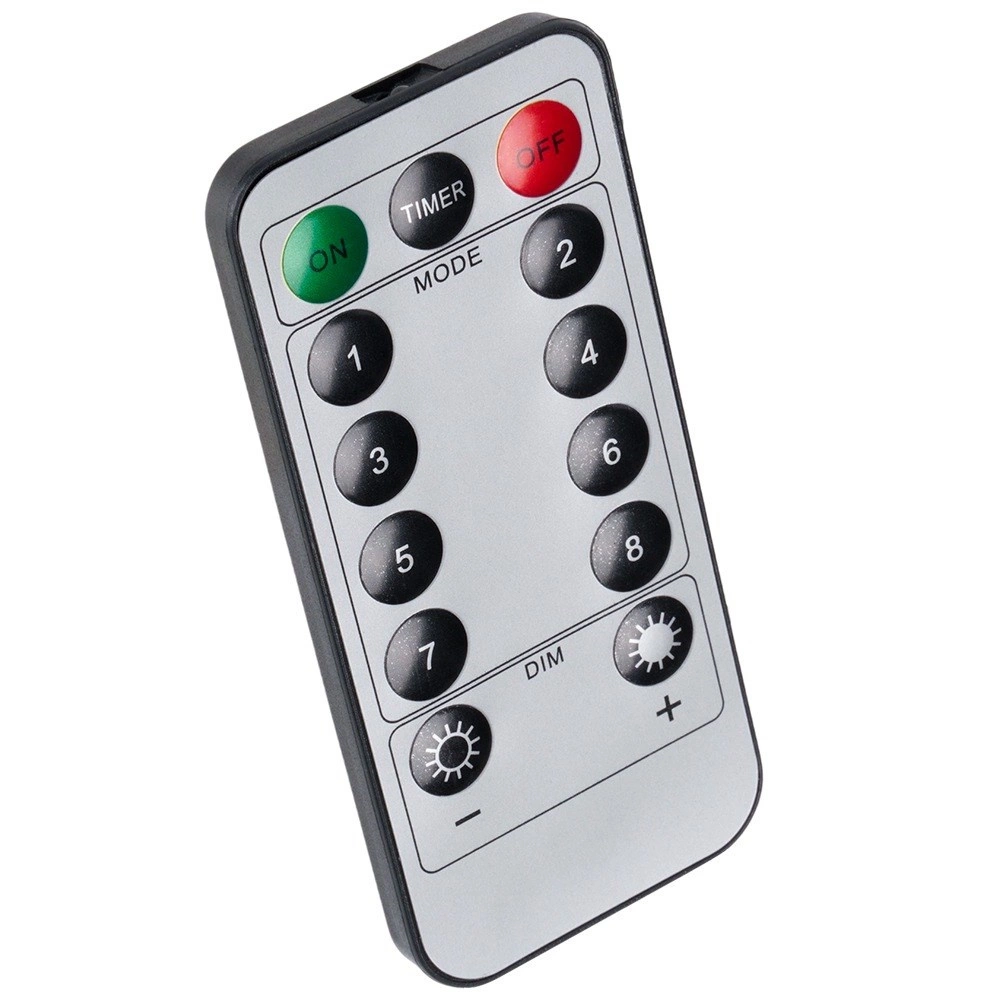 Dálkový ovladač umožňuje zapnutí/vypnutí, volbu 8 režimů, regulaci jasu a aktivaci časovače – vše z pohodlí gauče.