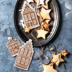 Vytvořte krásné perníkové domečky a hvězdičky, které ozdobí stůl i stromeček. Skvělé pro sváteční tvoření s dětmi.