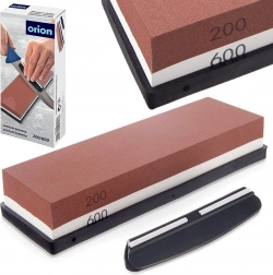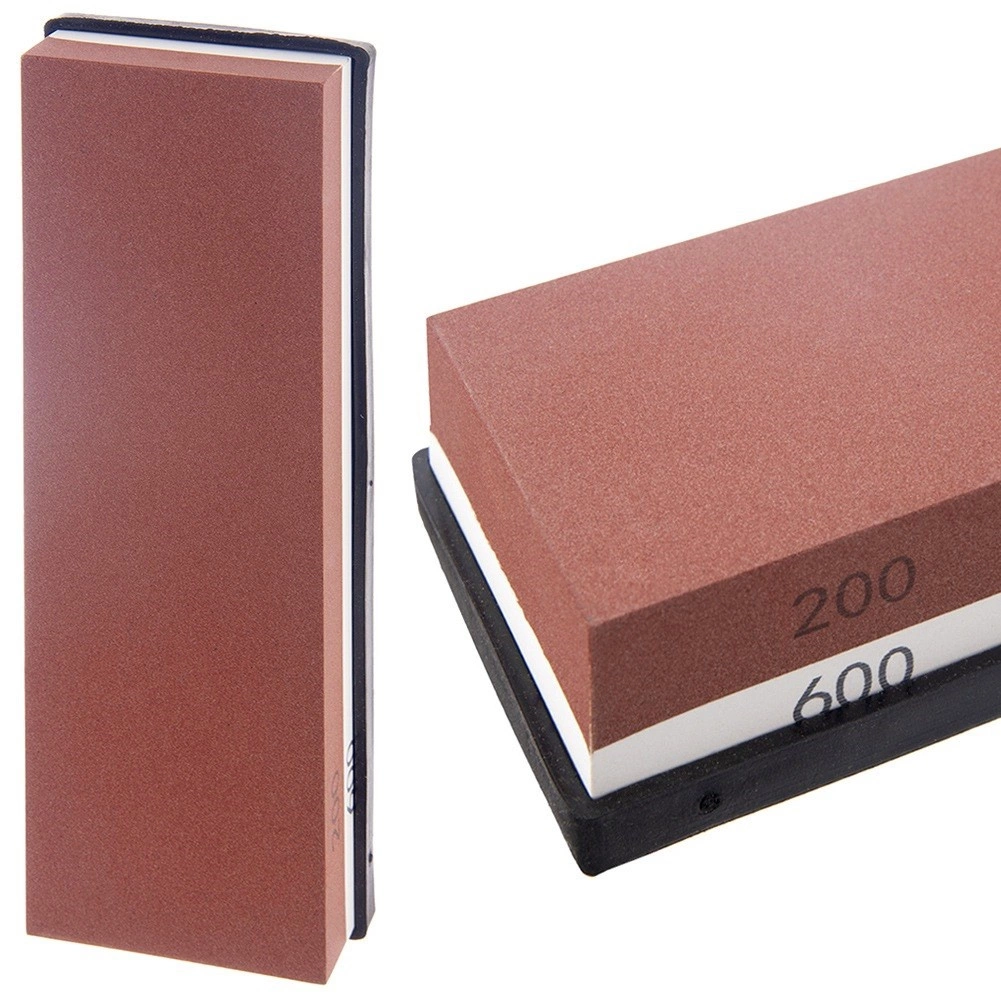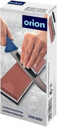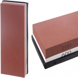 Oboustranný kámen kombinuje zrnitost 200 pro rychlé broušení a 600 pro finální doostření a leštění jedním nástrojem.