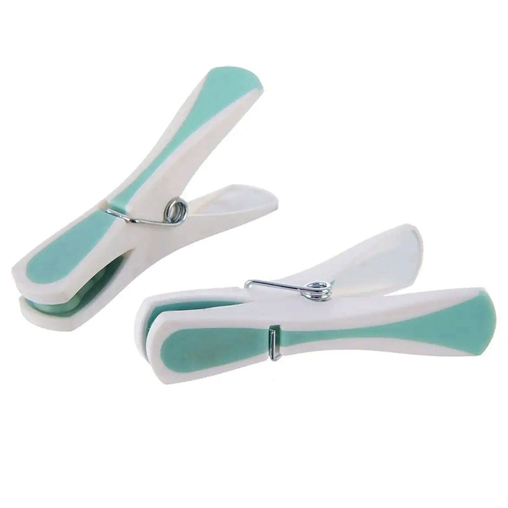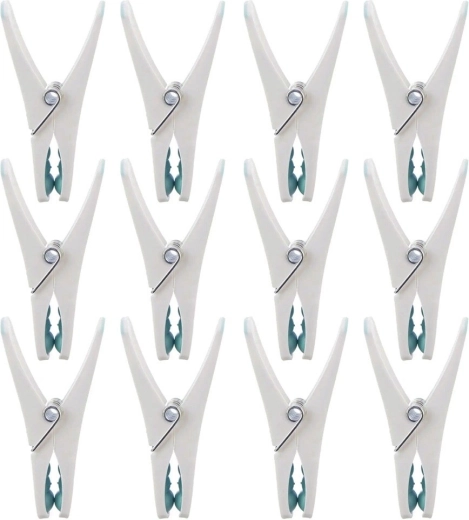 Kolíčky mají univerzální, klasický tvar pro použití na všech typech sušáků. Měkké úchopové zóny zvyšují stabilitu a přilnavost, takže prádlo drží na místě i při větru. Barevná kombinace bílé a tyrkysové/mentolové působí čistě a moderně.