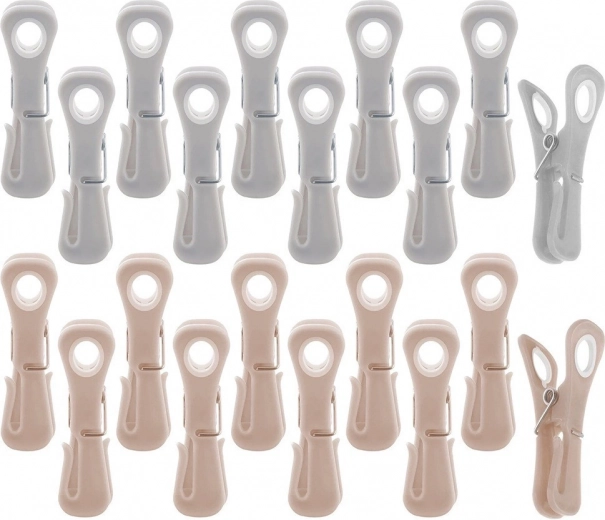 Sada univerzálních kolíčků na prádlo je navržena pro každodenní použití na sušáku, šňůře i věšáku. Díky kvalitnímu plastu a kovové pružině poskytují pevný stisk bez poškození tkanin, což oceníte při sušení triček, mikin i jemného prádla.