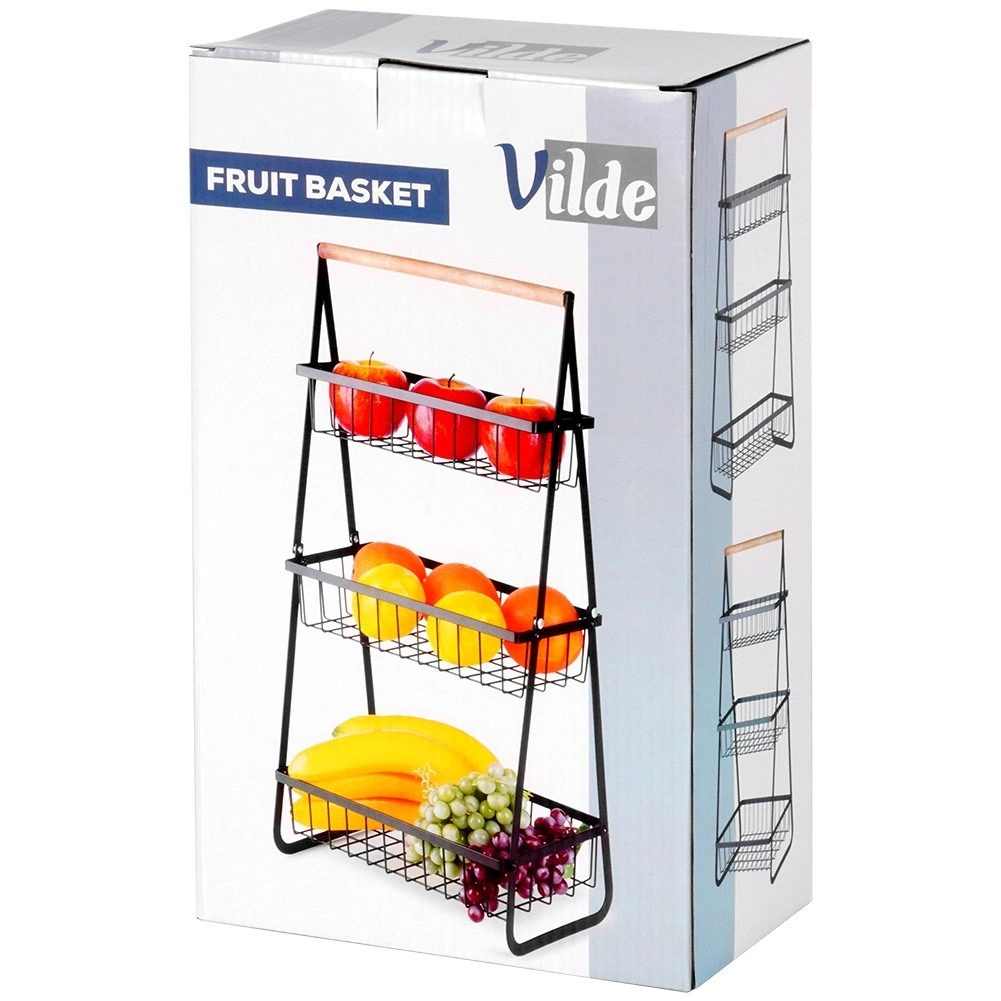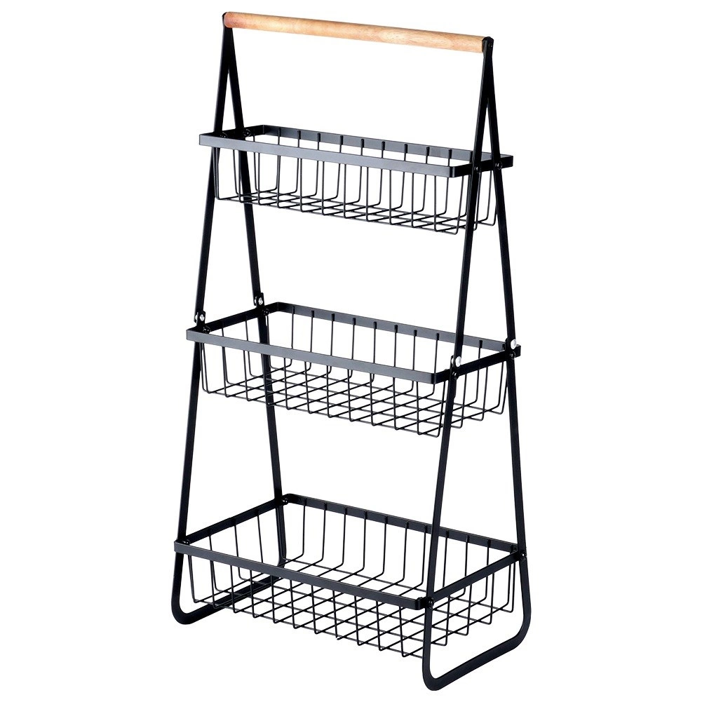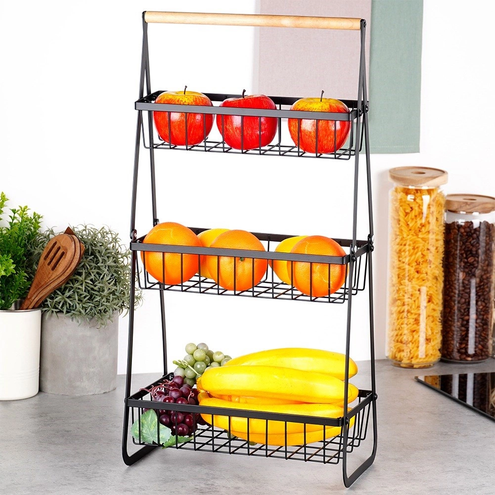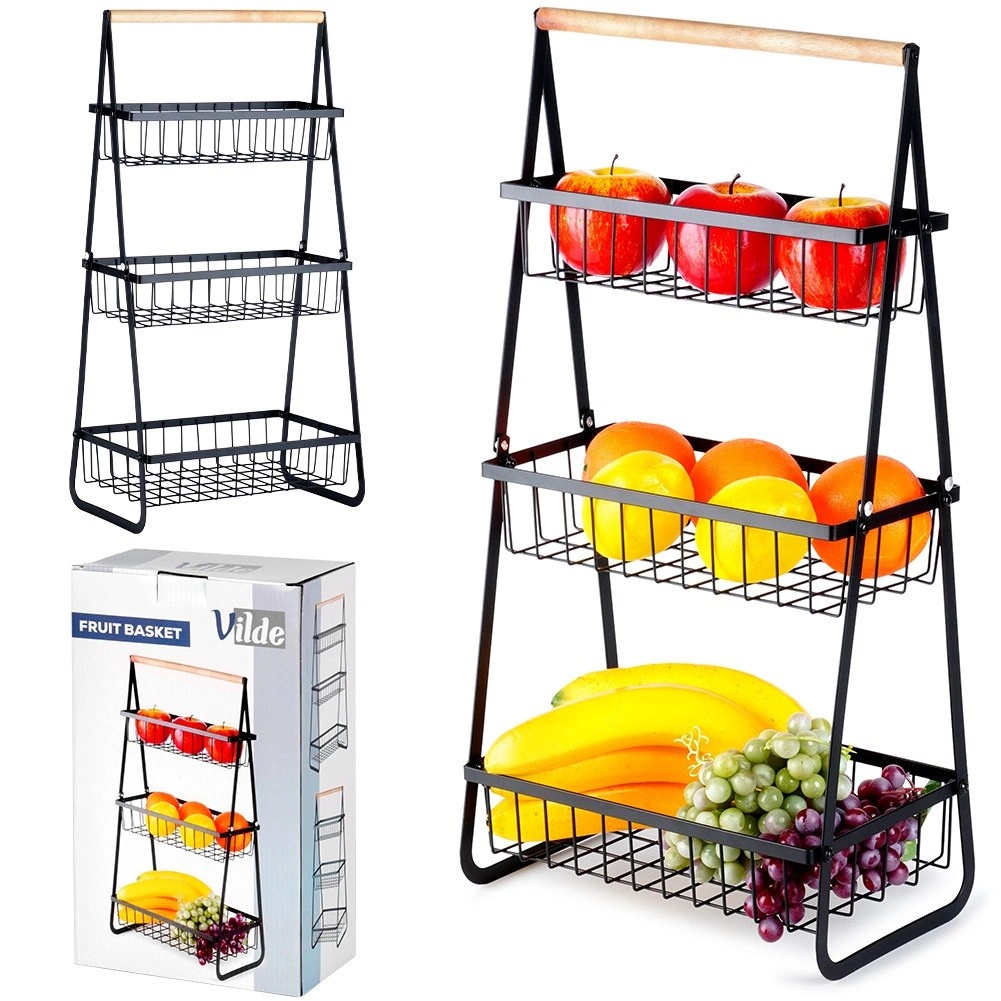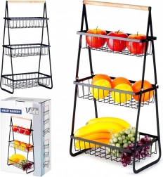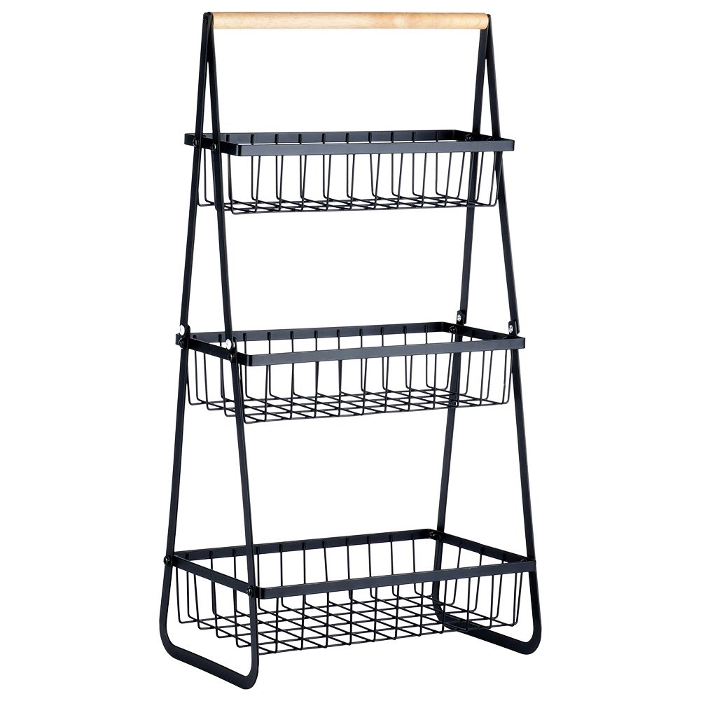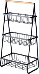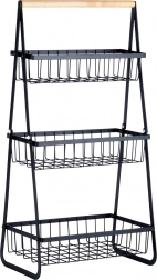 Tento praktický, volně stojící A‑rámový organizér s třemi drátěnými koši je ideální na kuchyňskou linku či komodu. Robustní kovové provedení v matné černé a dřevěné madlo kombinují odolnost s moderním industriálním vzhledem, který se hodí do klasických i moderních interiérů.