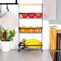 Otevřená konstrukce zajišťuje maximální prodyšnost a pomáhá udržet ovoce a zeleninu déle čerstvé. Různě velké košíky umožní přehlednou organizaci – od menších kusů nahoře po větší ve spodním koši. Košík můžete využít i na pečivo, ručníky, toaletní potřeby nebo kancelářské drobnosti.