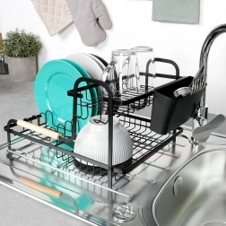 Maximalizujte prostor u dřezu s tímto dvouúrovňovým odkapávačem na nádobí. Spodní patro pojme až 10 talířů, horní i spodní část jsou ideální pro hrnky, sklenice a misky. Integrovaná odkapávací miska udrží pracovní plochu v suchu a čistotě.