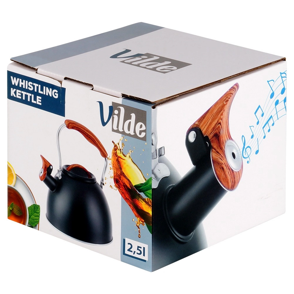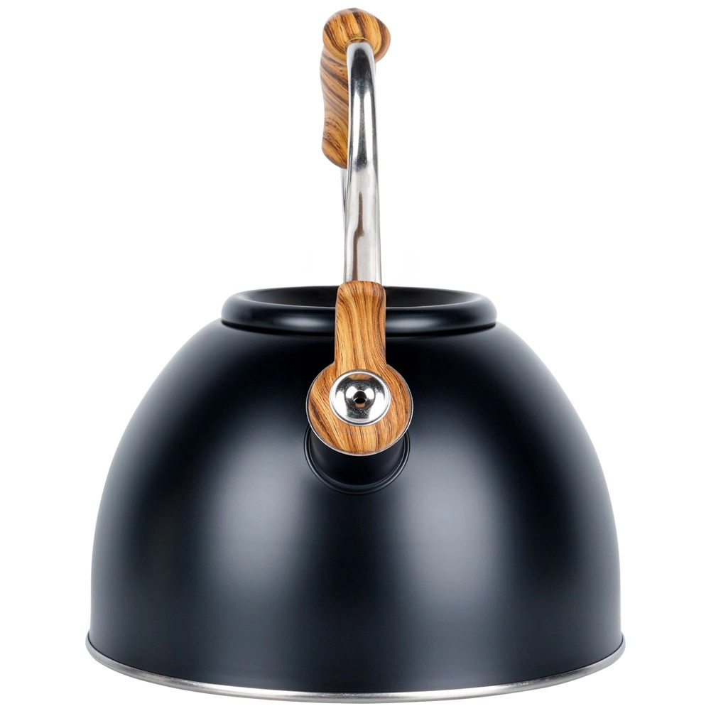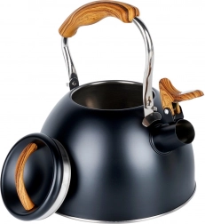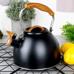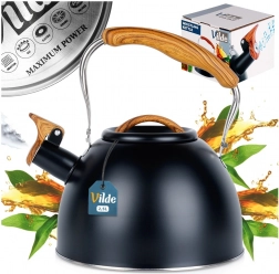 Elegantní matně černá konvice z nerezové oceli zajistí čistou chuť vody a dlouhou životnost. Díky širokému stabilnímu dnu a účinnému přenosu tepla se voda zahřívá rychle i na nízkém výkonu. O bezpečné a pohodlné nalévání se stará výklopná píšťalka ovládaná páčkou na rukojeti.