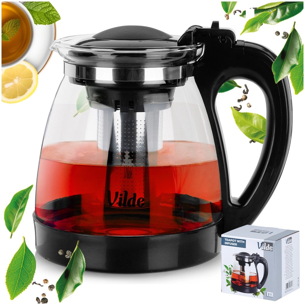 Elegantní skleněná konvice s objemem 2 l a vyjímatelným nerezovým infuzérem pro sypaný čaj i bylinky. Vyrobena z odolného borosilikátového skla, s pohodlným úchopem, výklopným víčkem a přesným nalévacím zobáčkem. Ideální pro přípravu čaje bez lógru, horkých i studených nápojů a snadné servírování.