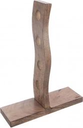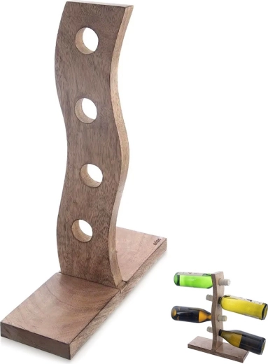 Objevte originální stojan na víno z kvalitního mangového dřeva, který pojme až 4 láhve. Vlnité vertikální tělo s kruhovými otvory udrží víno v ideální horizontální poloze, aby zůstal korek přirozeně vlhký a nápoj si zachoval svou kvalitu. Přírodní kresba dřeva a čisté linie se snadno sladí s moderním i rustikálním interiérem.