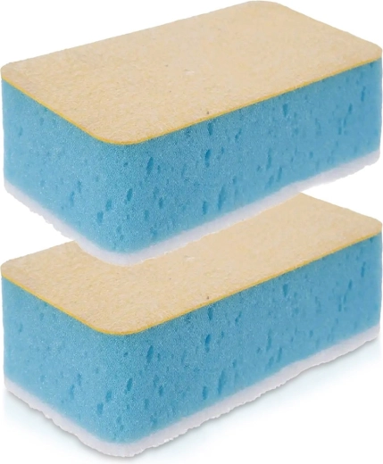 Oboustranné kuchyňské houbičky s rozměry přibližně 14 × 7 × 4,5 cm spojují vysokou účinnost a šetrnost. Pevná strana s abrazivní vrstvou si poradí s připáleninami a zaschlou špínou, zatímco jemná strana je ideální pro sklenice, zrcadla a choulostivé povrchy – bez škrábanců a šmouh. Díky vysoké savosti spotřebujete méně saponátu a úklid bude rychlejší i ekonomičtější.