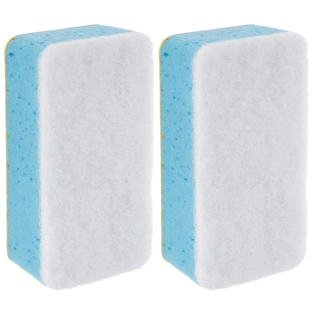 Praktická sada 2 kuchyňských houbiček s oboustrannou čisticí plochou pro důkladné mytí nádobí i citlivých povrchů. Kombinace pevné abrazivní strany na odolné nečistoty a jemné strany pro sklo a zrcadla zajišťuje univerzální použití bez poškrábání. Houbičky jsou odolné, vícekrát použitelné, snadno se vyplachují a rychle schnou, což omezuje vznik zápachu a bakterií.