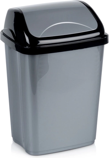 Odolná konstrukce a snadná údržba – kvalitní plast v lesklé šedé barvě s černým víkem je lehký, ale pevný a odolný. Hladké povrchy se snadno čistí a koš lze díky kompaktním rozměrům umístit na podlahu, na pracovní desku nebo schovat do skříňky.