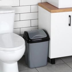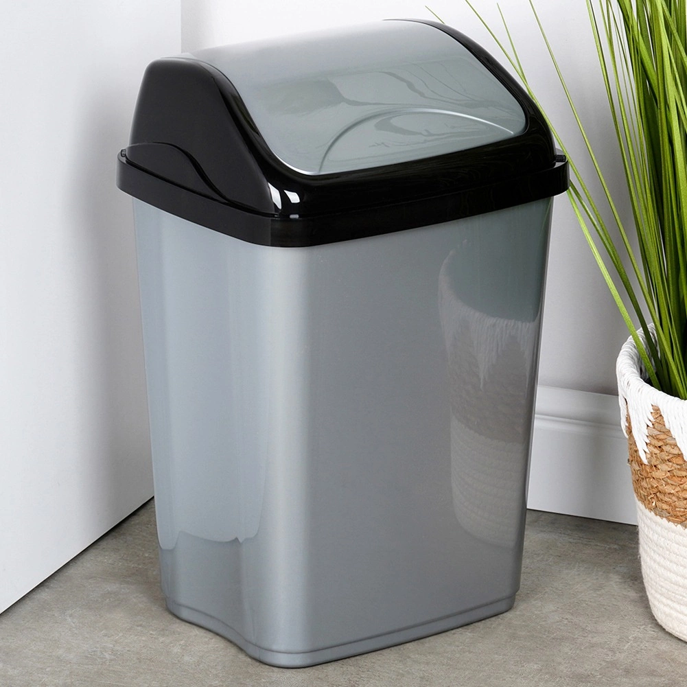 Praktický odpadkový koš s objemem 16 l je vyroben z kvalitního plastu v šedé barvě s leskle černým víkem. Uchylné (kyvné) víko umožňuje pohodlné vyhazování bez nutnosti víko zvedat a zároveň pomáhá udržet nepříjemné pachy uvnitř. Díky kompaktním rozměrům se vejde do úzkých míst, pod dřez, do skříňky nebo do rohu místnosti.