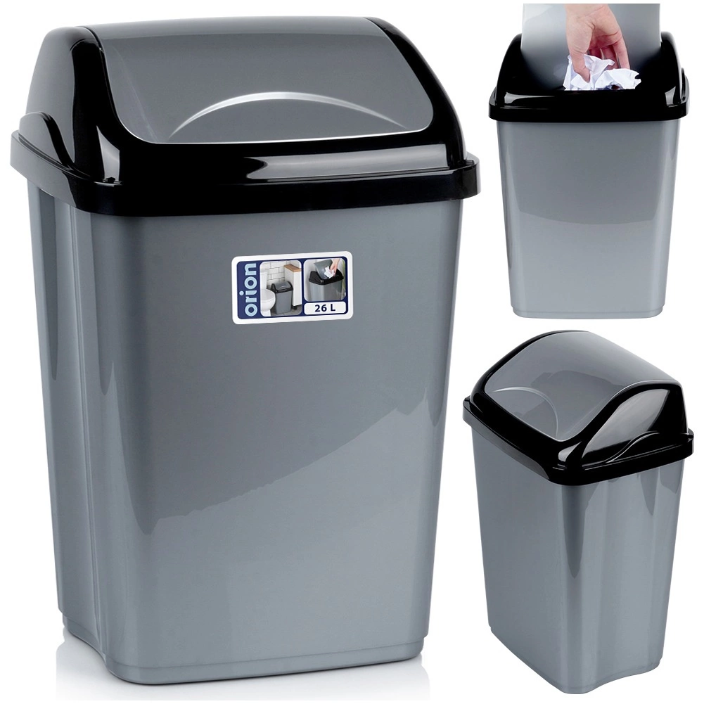 Šedý plastový koš na odpadky se sklopným víkem je ideální pro každodenní použití v domácnosti i kanceláři. Objem 26 litrů poskytuje dostatek místa pro běžný odpad, zatímco snadno omyvatelný povrch usnadňuje údržbu. Odnímatelné víko se sklopnou klapkou zajišťuje čistý vzhled a pomáhá zachytit nežádoucí pachy.