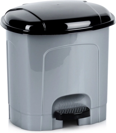Stylový a praktický koš na odpad s pedálem je navržen pro maximální hygienu a pohodlí. Díky nožnímu pedálu otevřete víko snadno a bez použití rukou, což oceníte v koupelně i kuchyni. Odolné plastové provedení v leskle šedé barvě s černým víkem se skvěle hodí do moderních interiérů.