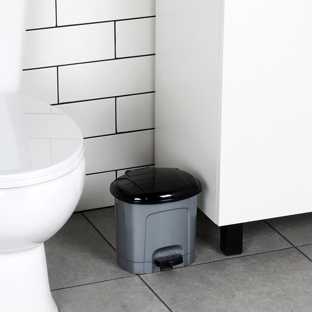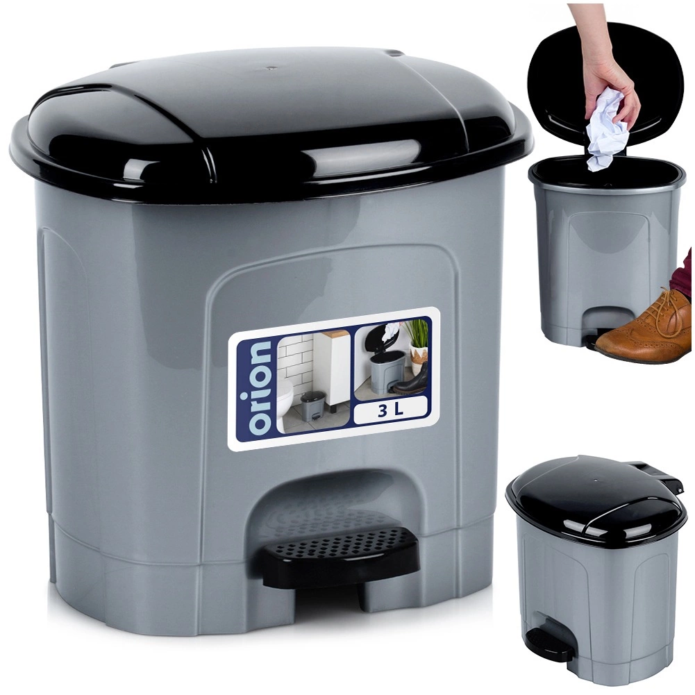 Kompaktní pedálový koš na odpad o objemu 3 l v elegantní šedé barvě s černým víkem nabízí hygienické otevírání bez dotyku, lehký a odolný plast a vyjímatelnou vložku pro snadné vysypávání. Ideální do koupelny, kuchyně i kanceláře.