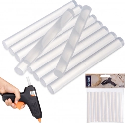 Praktická sada 10 bezbarvých tavných tyčinek o průměru 11 mm a délce 10 cm pro přesné a čisté lepení. Vhodné pro DIY, opravy v domácnosti i kreativní tvorbu, zajišťují silný spoj a spolehlivý výkon díky kvalitní směsi EVA a pryskyřice.