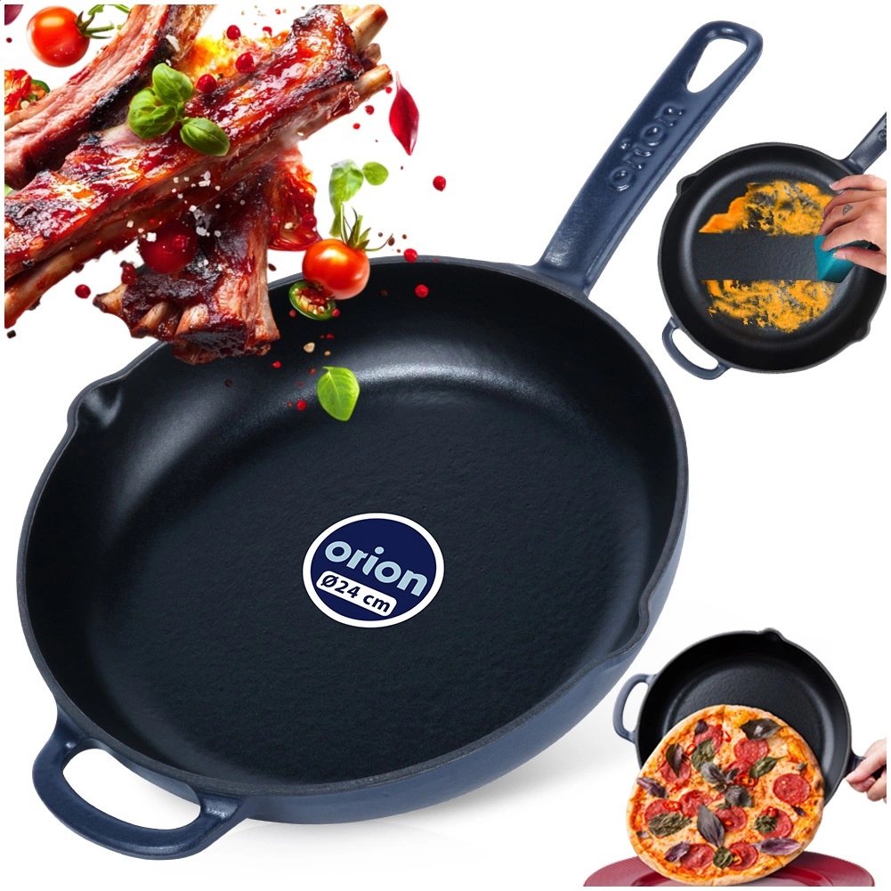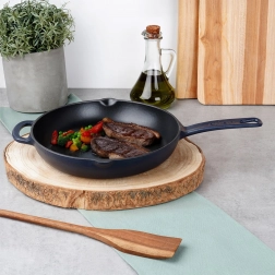 Tato robustní litinová pánev je ideální pro každodenní vaření – od rychlého restování zeleniny přes šťavnaté steaky až po zapékání v troubě. Smaltovaný povrch v černé barvě usnadňuje přípravu i servírování a zároveň napomáhá pohodlnému čištění. Vnější modré provedení dodá vaší kuchyni styl a odolná litina zajistí stabilní výsledky.