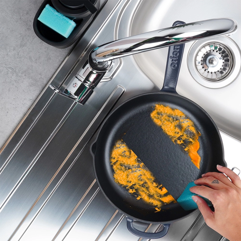 Černý smalt uvnitř usnadňuje přípravu pokrmů a čištění, vnější modré provedení dodává pánvi elegantní vzhled. Vhodná i do myčky (ruční mytí doporučeno).
