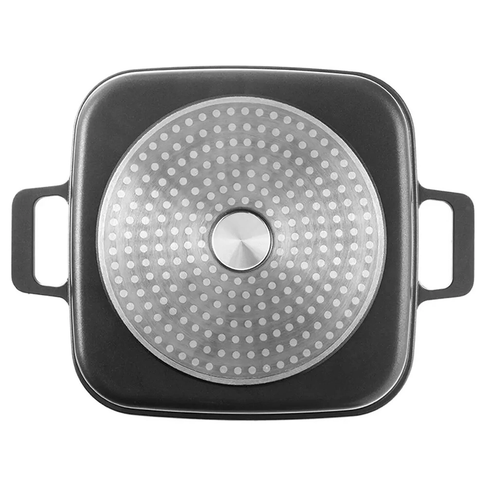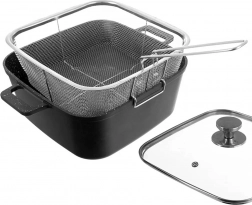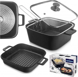 Tento praktický set kombinuje čtvercový hluboký hrnec s poklicí (4,5 l), grilovací pánev (2 l) a nerezový košík. Díky nepřilnavému granitovému povrchu PFLUON odolnému proti poškrábání připravíte jídla s minimem tuku a s perfektním výsledkem. Průhledná skleněná poklice s parním ventilkem usnadní kontrolu a urychlí vaření.