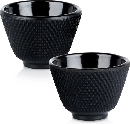 Elegantní sada dvou čajových číšků o objemu 60 ml z kvalitní litiny s emailovaným vnitřkem. Skvěle drží teplo, neabsorbují pachy a snadno se čistí. Díky texturovanému povrchu se příjemně drží a odkazují na tradici japonské čajové ceremonie. Ideální pro čaj, bylinkové nálevy i espresso.