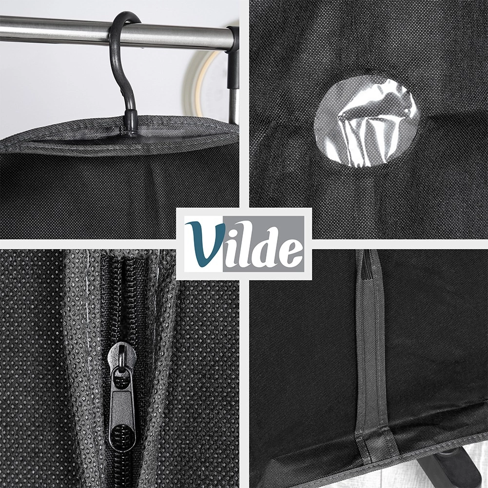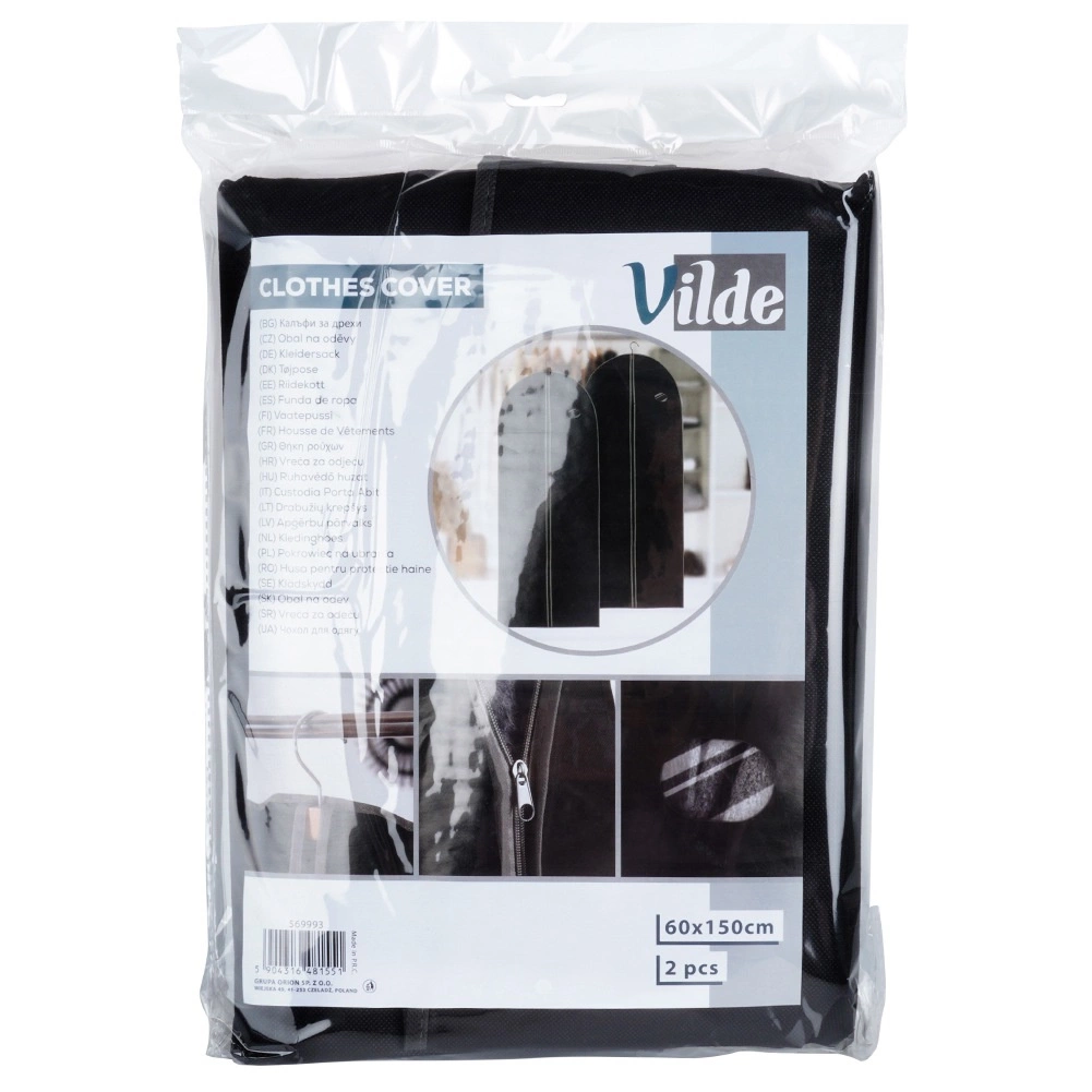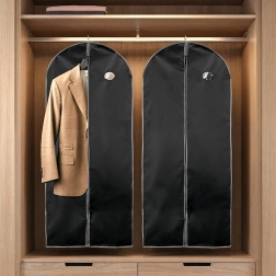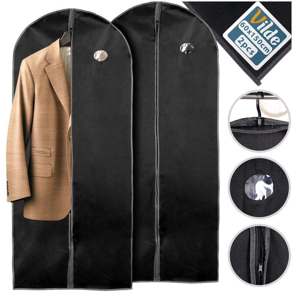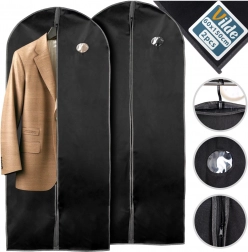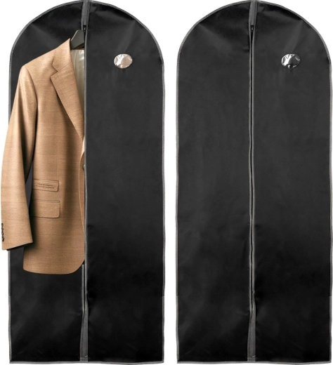 Dva černé obaly s celoplošným zipem udrží vaše oděvy bez prachu a připravené k nošení. Skvělé pro obleky, kabáty i šaty.