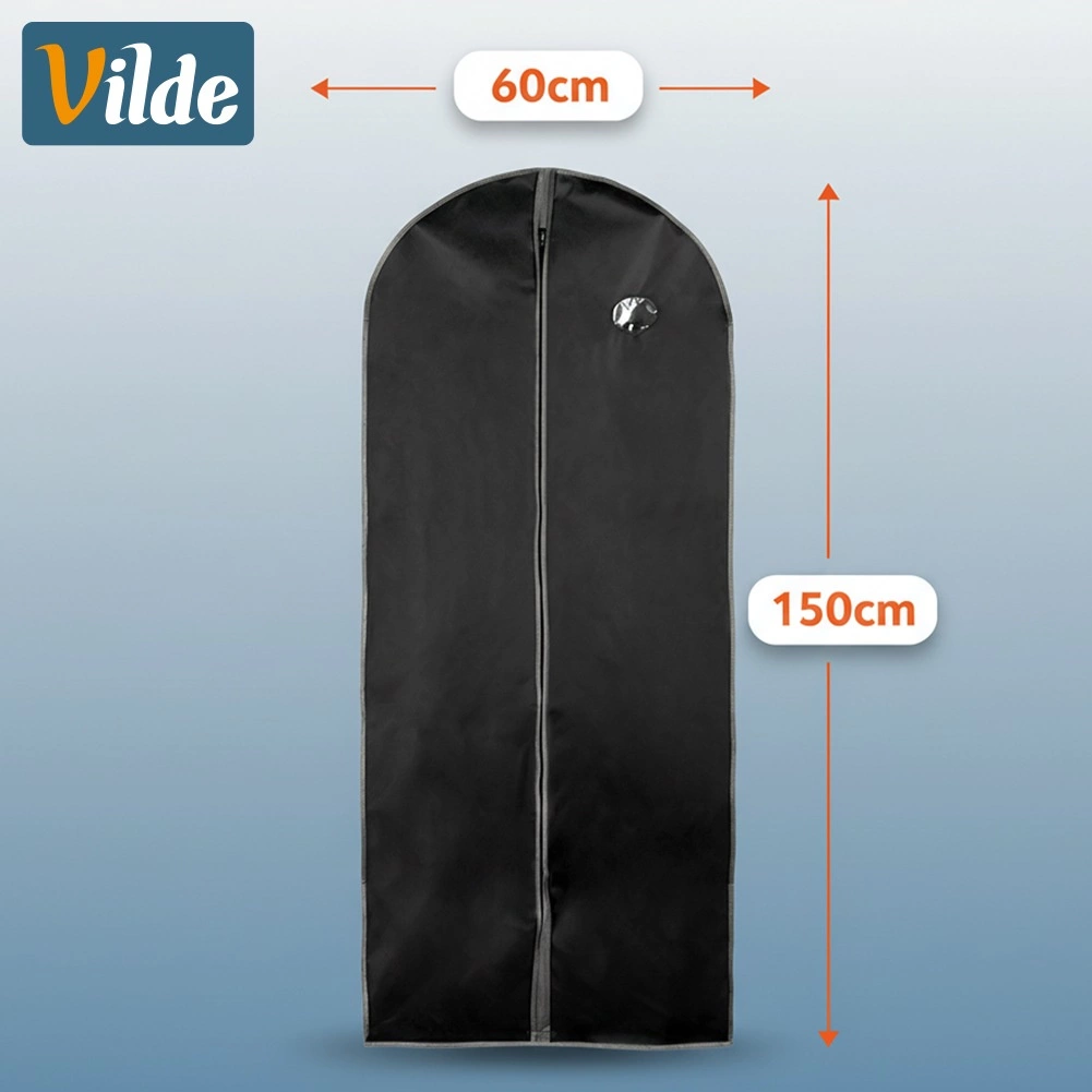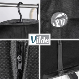 Praktická sada dvou obalů na oblečení o rozměru 60 × 150 cm chrání vaše šaty, kabáty i obleky před prachem, vlhkostí a moly. Lehký černý polyester, plnohodnotný zip a průhledné okénko zajistí přehledné a bezpečné uložení oděvů doma i na cestách. Univerzální velikost, odolný materiál a snadná manipulace pro každodenní použití.