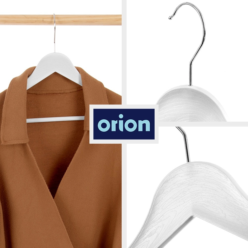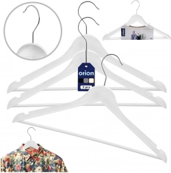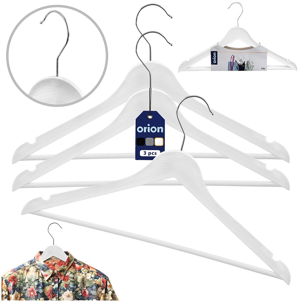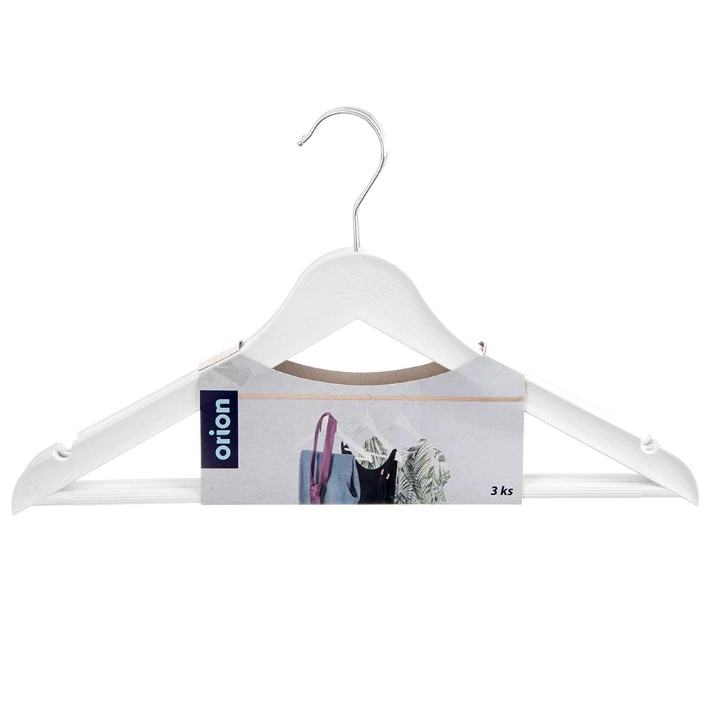 Praktická sada 3 bílých ramínek s otočným háčkem pro přehlednou organizaci skříně. Vzhled imitující dřevo a kovový háček dodávají eleganci, ramínka jsou univerzální pro košile, šaty i kabáty. Každé ramínko má rozměry 42,5 × 24 × 1 cm a díky otočnému háčku je jejich umístění ve skříni maximálně pohodlné. Originální produkt české značky ORION.