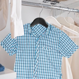 Zářezy na ramenou jistí šaty a topy, spodní tyč je ideální pro kalhoty či šátky – jedno ramínko pro více typů oděvů.