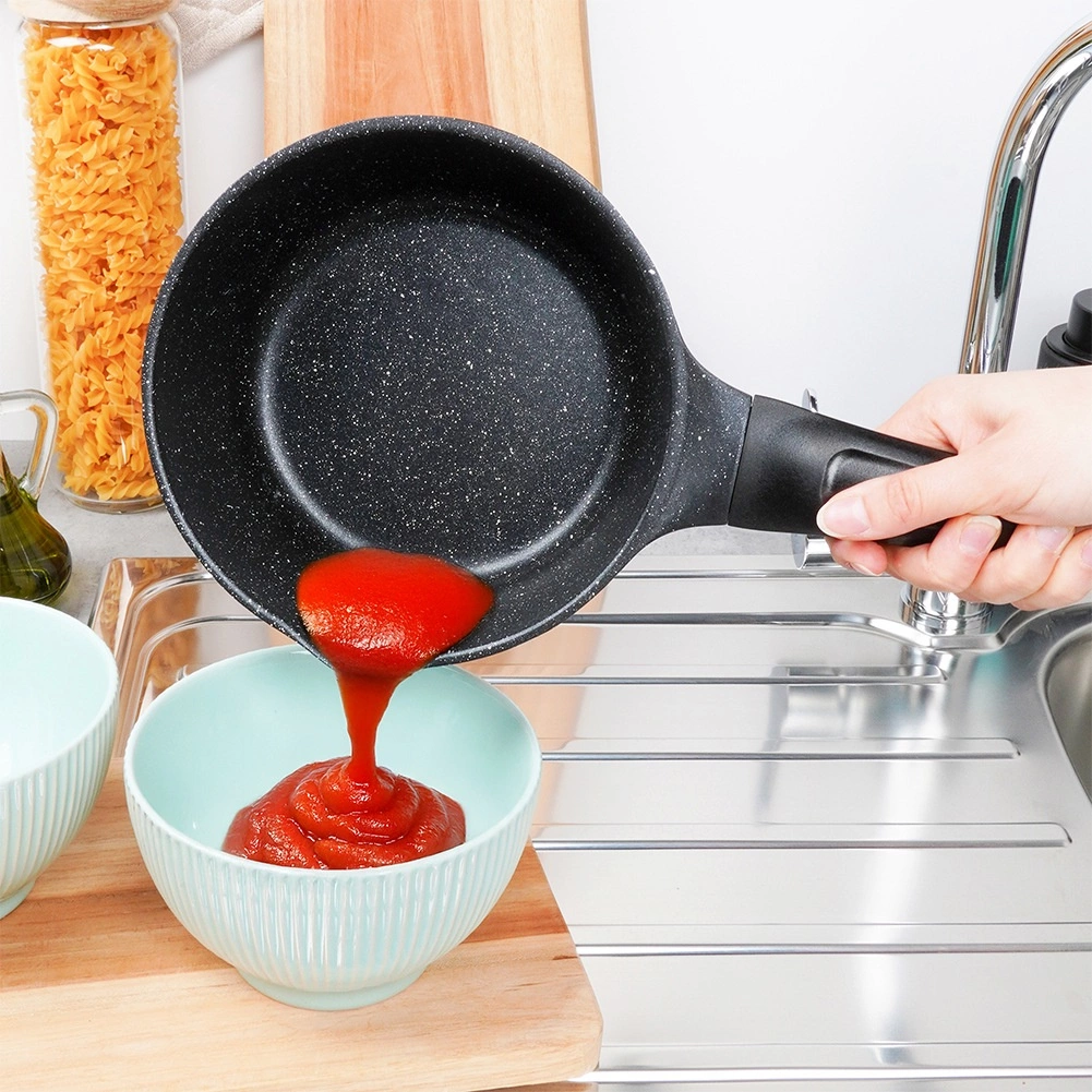Rendlík z odolného hliníku s granitovým nepřilnavým povrchem PFLUON GRANIT je skvělou volbou pro přípravu omáček, polévek, kaší nebo na rychlé ohřátí mléka. Povrch je odolný vůči poškrábání, bez PFOA a PTFE, a udržuje rovnoměrnou teplotu po celé ploše. Díky vylévacímu zobáčku snadno a čistě přelijete tekutiny.