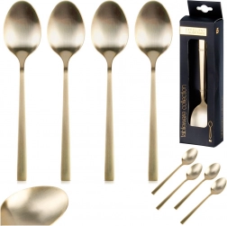 Dodejte svému stolování nádech luxusu se sadou 4 čajových lžiček v saténově zlaté barvě. Moderní, čisté linie a kartáčovaný povrch skvěle ladí s klasickou i moderní výbavou domácnosti a kaváren. Odolná nerezová ocel je bezpečná pro kontakt s potravinami a zaručuje dlouhou životnost.