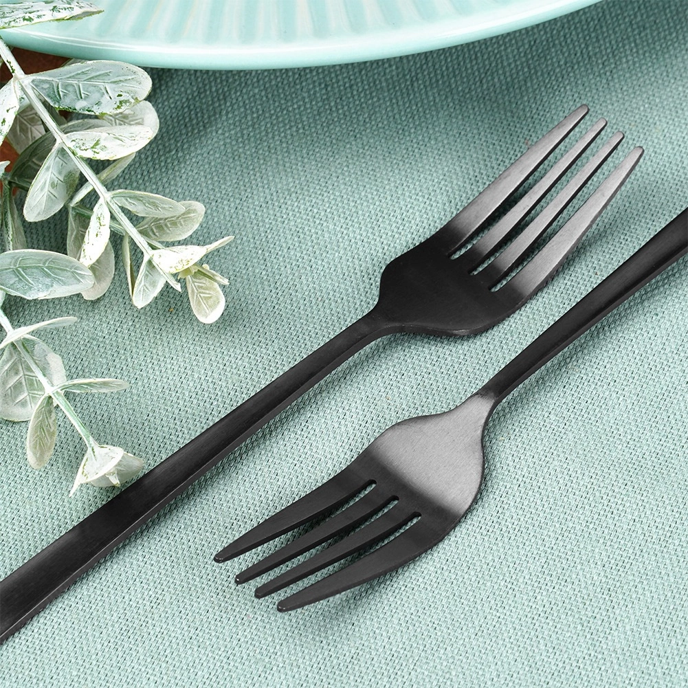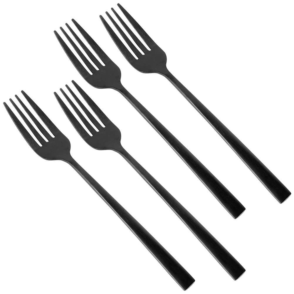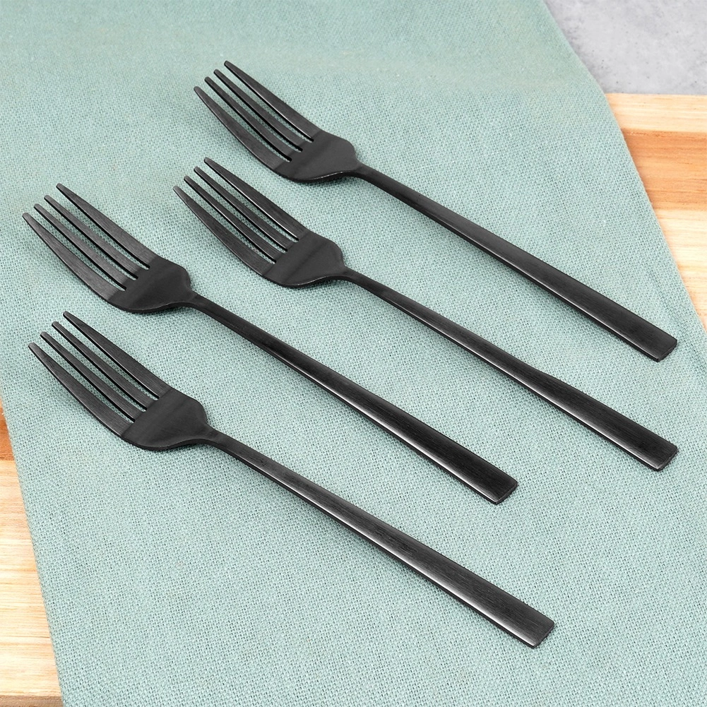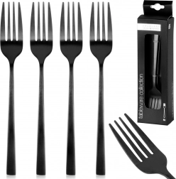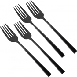 Elegantní sada čtyř dezertních vidliček v moderní matně černé barvě z kvalitní nerezové oceli. Jsou bezpečné pro kontakt s potravinami, vhodné do myčky a ideální pro servírování dortů, koláčů a dezertů doma i v gastronomii.