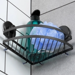 Tato rohová polička do sprchy spojuje minimalistický design a vysokou funkčnost. Práškově lakovaný kov v matné černi je odolný, snadno se čistí a skvěle zapadne do moderních i klasických koupelen. Díky dvěma velkým přísavkám ji bezpečně upevníte na hladké povrchy, jako jsou obklady či sklo – bez vrtání a poškození stěn.