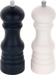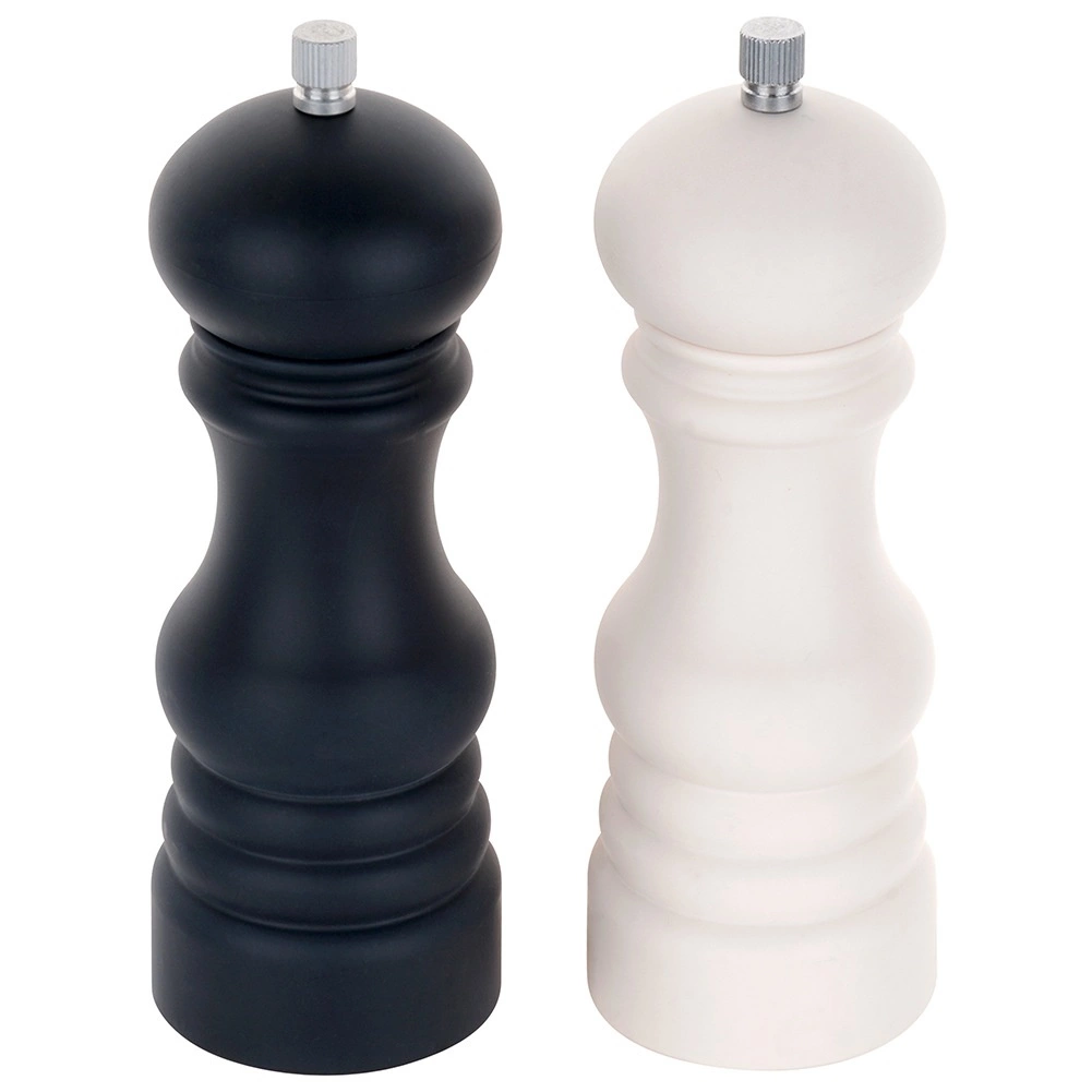 Elegantní sada dvou ručních mlýnků na sůl a pepř o výšce 17,5 cm a průměru 6 cm. Nabízí ergonomický tvar, snadné plnění a čištění a přesné nastavení hrubosti. Kontrastní bílá a černá barva umožňuje rychlé rozlišení koření, takže budete mít správnou chuť vždy po ruce.