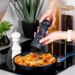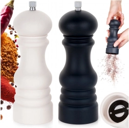 Odolné tělo v matné bílé a černé barvě zajišťuje pohodlný úchop a dlouhou životnost. Mlýnky se snadno doplňují a čistí, takže údržba je otázkou chvilky. Díky nastavitelné hrubosti mletí docílíte jemného prachu i hrubších kousků podle typu pokrmu.