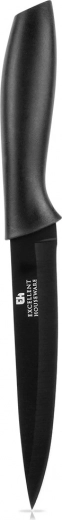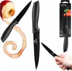 Praktický kuchyňský nůž s celkovou délkou 23 cm a ostřím 10 cm je ideální pro každodenní krájení. Nabízí ostrý nerezový čepel s černým matným povrchem, ergonomickou rukojeť pro bezpečný úchop a univerzální použití na ovoce, zeleninu, bylinky i maso. Díky kvalitnímu zpracování si dlouho udrží ostrost a lze jej mýt v myčce.