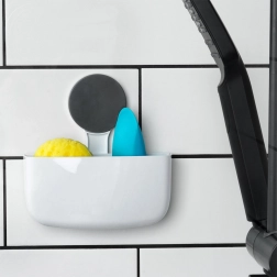 Instalace je otázkou chvilky: stačí dokonale očistit a odmastit hladký povrch (dlaždice, sklo) a pevně přitlačit přísavku. Odtokové otvory na dně zabraňují hromadění vody, takže houbičky, kartáče či mýdlo rychle osychají. Nosnost až 2 kg zajišťuje stabilní uložení šamponů, sprchových gelů i dalších přípravků. Poličku lze využít také v kuchyni například na kořenky.