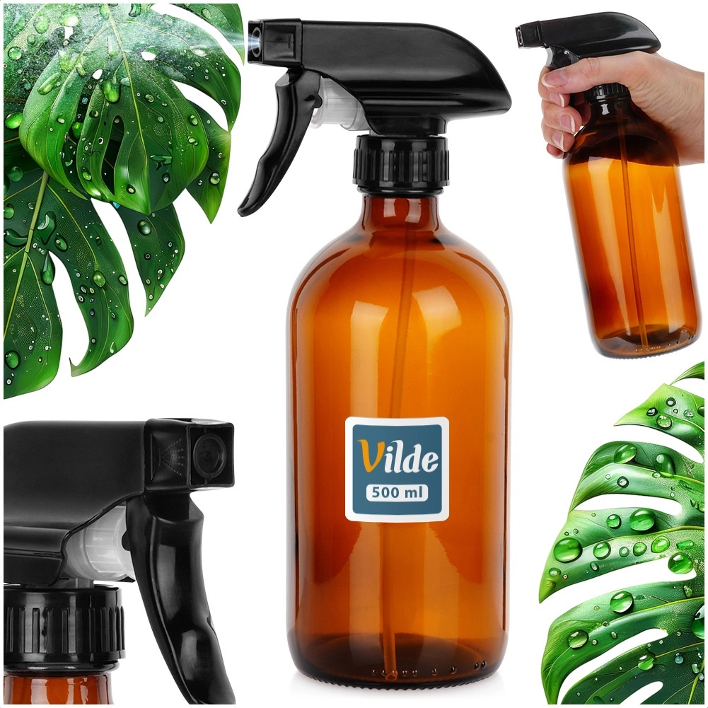 Praktický skleněný rozprašovač o objemu 500 ml s dvoustupňovou regulací od jemné mlhy po silný proud. Tmavě jantarové sklo chrání světlocitlivé tekutiny, je znovupoužitelné a v kombinaci s ergonomickou spouští zajišťuje pohodlné používání doma, na zahradě i při úklidu.