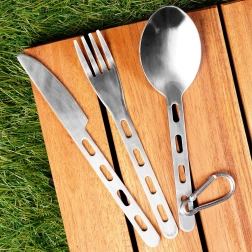 Příbor je vyroben z kvalitní nerezové oceli odolné vůči korozi, která snese náročné podmínky kempování a dlouhodobé používání.
