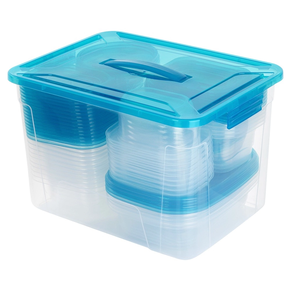 Uložte všech 50 kusů přehledně do prostorného boxu s uzamykatelným víkem a rukojetí. Snadný přenos, ochrana před prachem a pořádek v kuchyni.