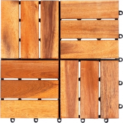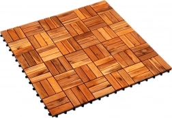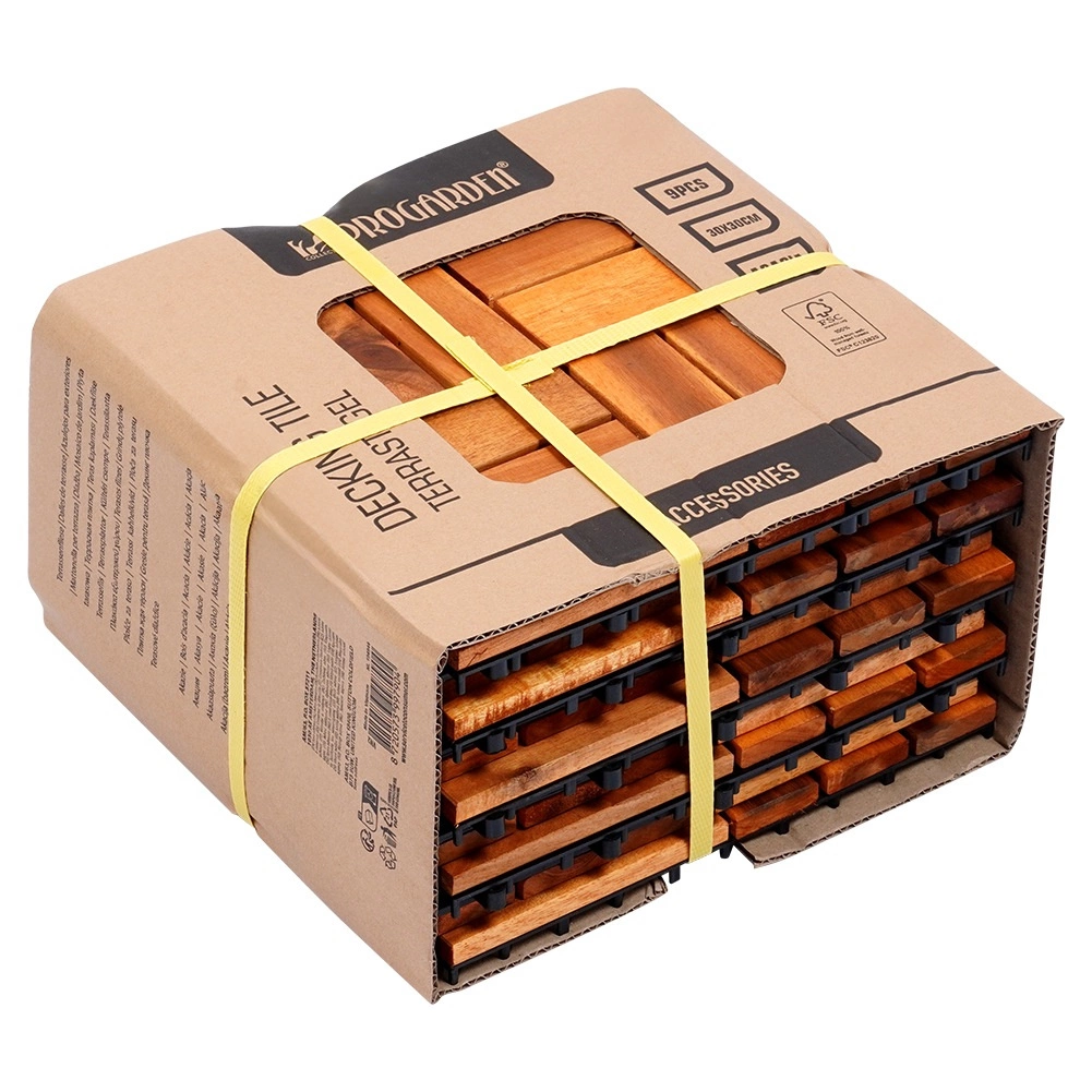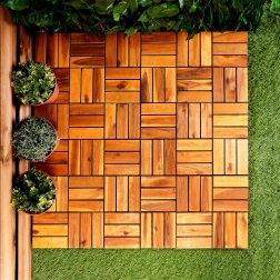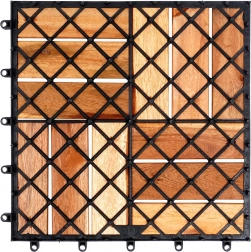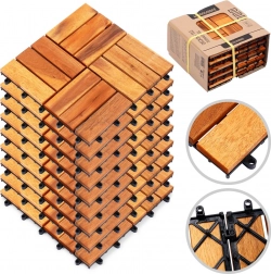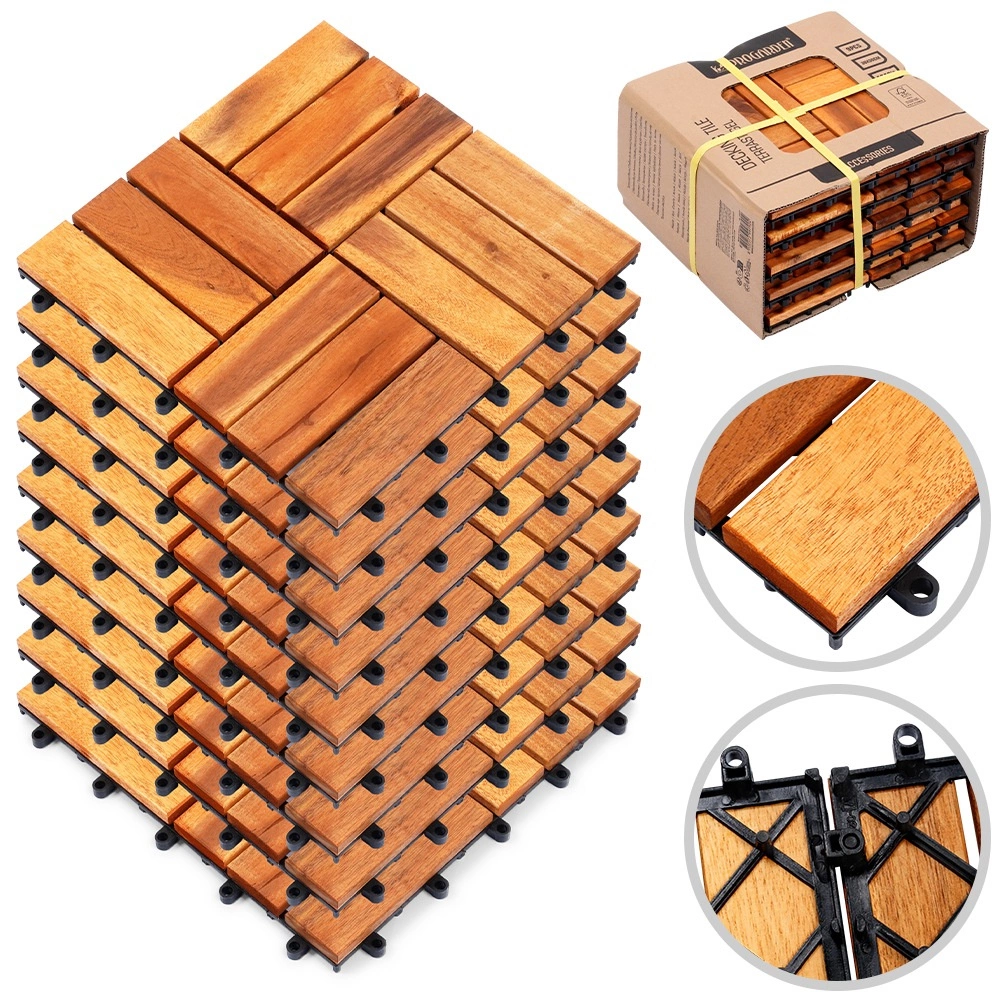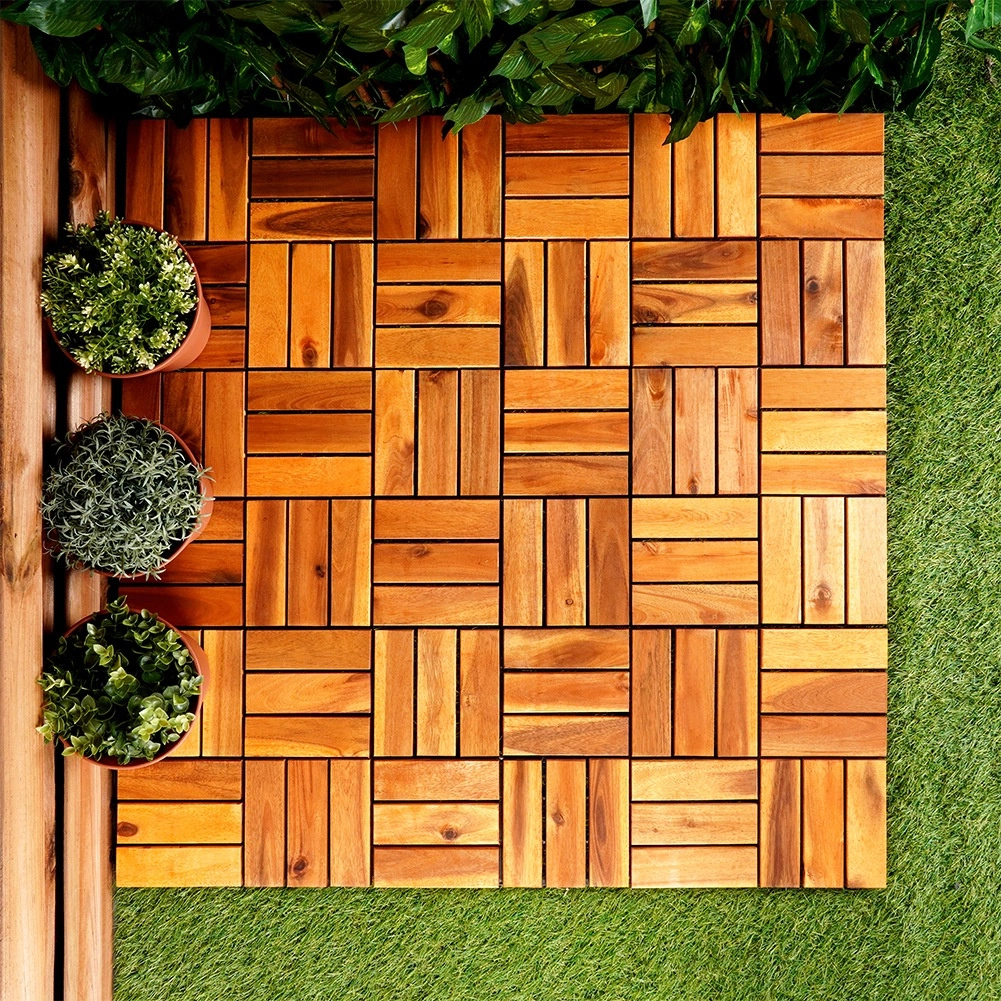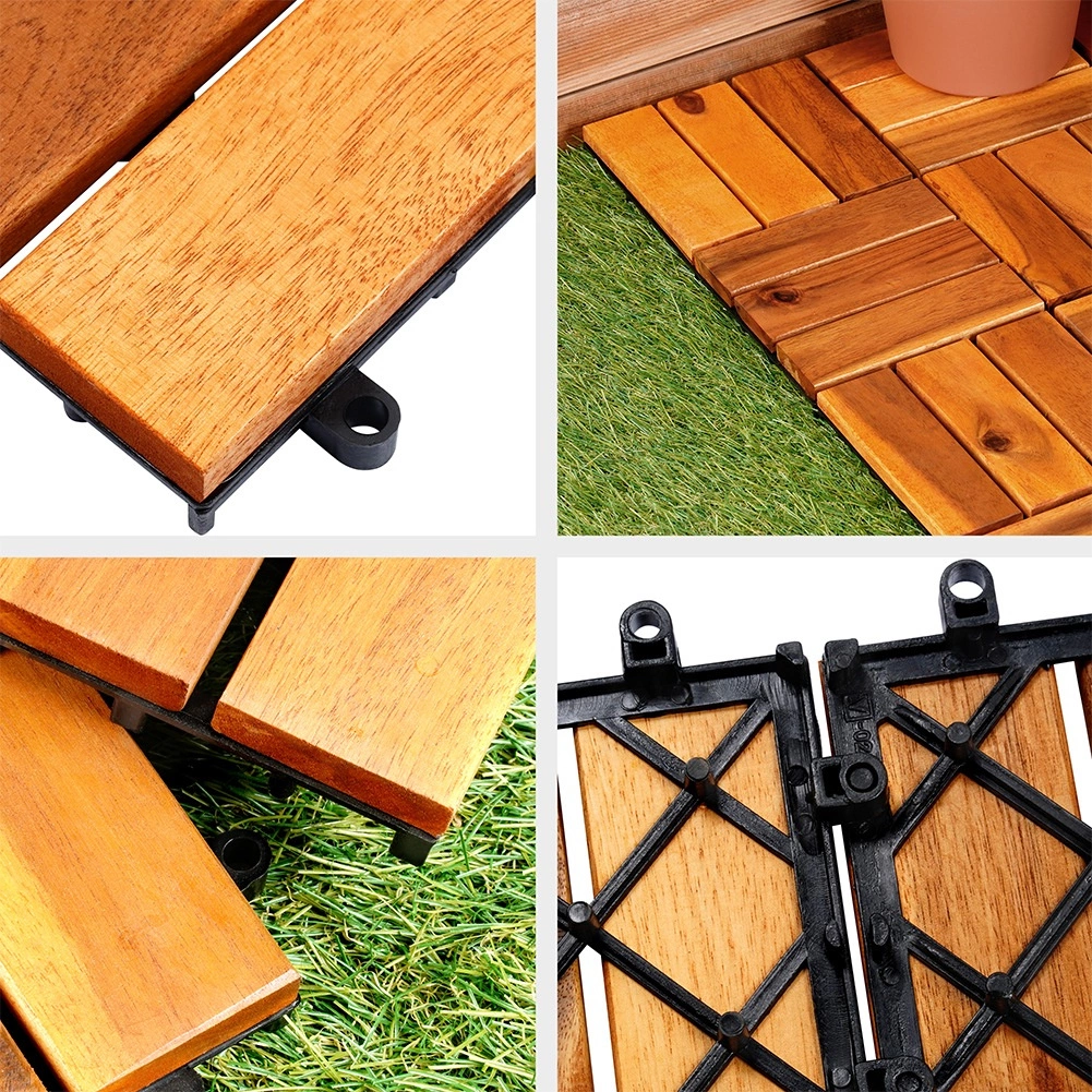 Tyto dřevěné terasové dlaždice promění váš balkón, terasu nebo zahradní kout v útulnou a stylovou zónu. Povrch z kvalitního akátového dřeva v teplém hnědém odstínu dodá prostoru přirozený vzhled, zatímco plastová mřížová základna se stará o stabilitu, drenáž a odvětrávání.