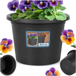 Černý kulatý květináč o průměru 23 cm a výšce 16,5 cm je skvělou volbou pro pěstování rostlin i jako dekorativní obal. Díky odolnosti vůči povětrnostním vlivům jej můžete bez obav používat venku po celý rok – nevadí mu déšť, vítr ani sluneční záření.