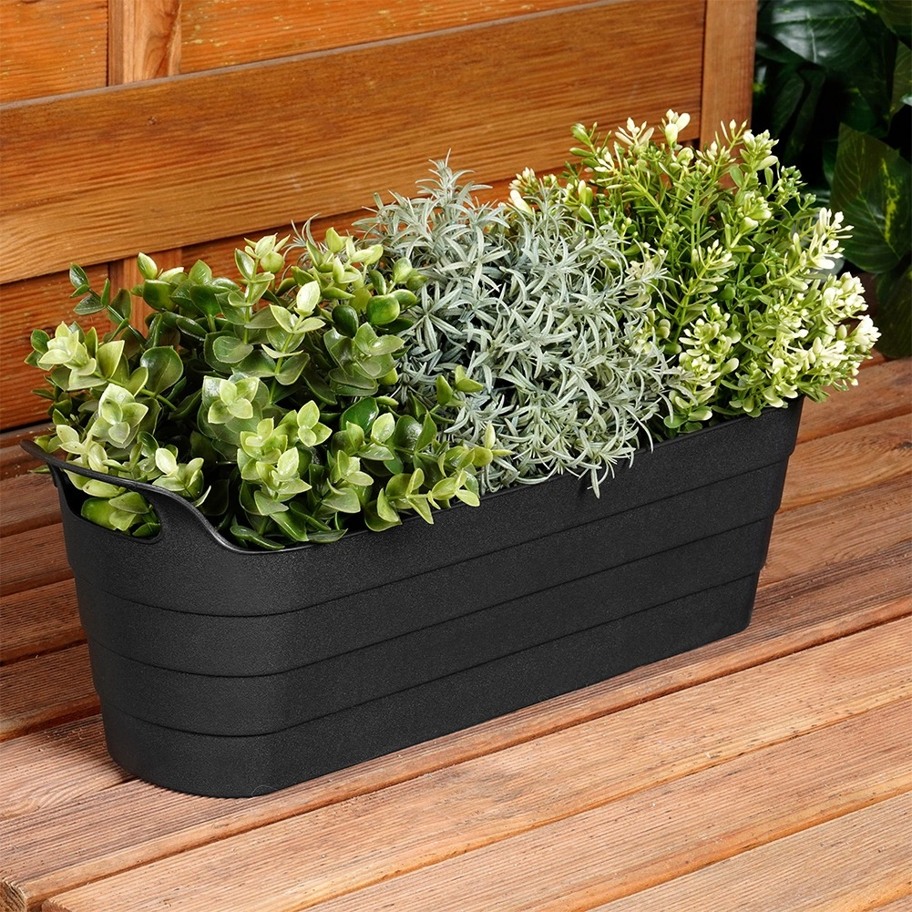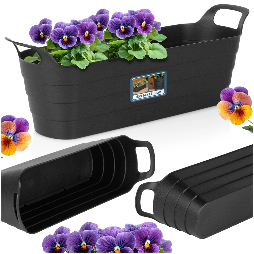 Podlouhlý květináč 44,5 × 13,5 × 14,5 cm (výška bez uchytů 11,5 cm) zvýrazní vaše oblíbené rostliny, květiny i bylinky. Díky kvalitnímu recyklovanému plastu je lehký, pevný a snadno se čistí, takže se hodí pro každodenní použití v interiéru i exteriéru.