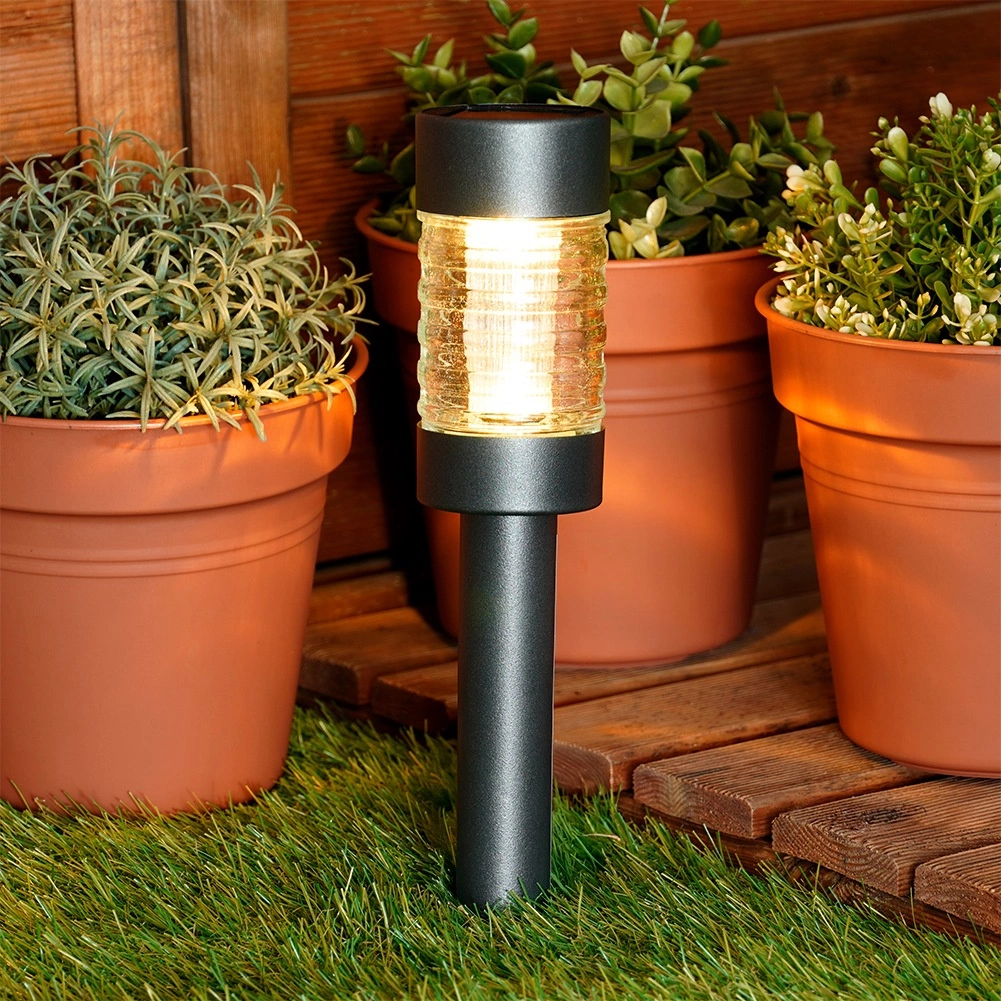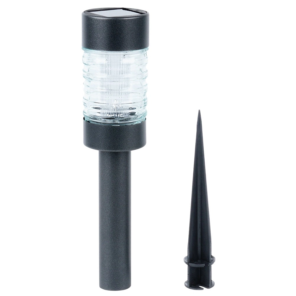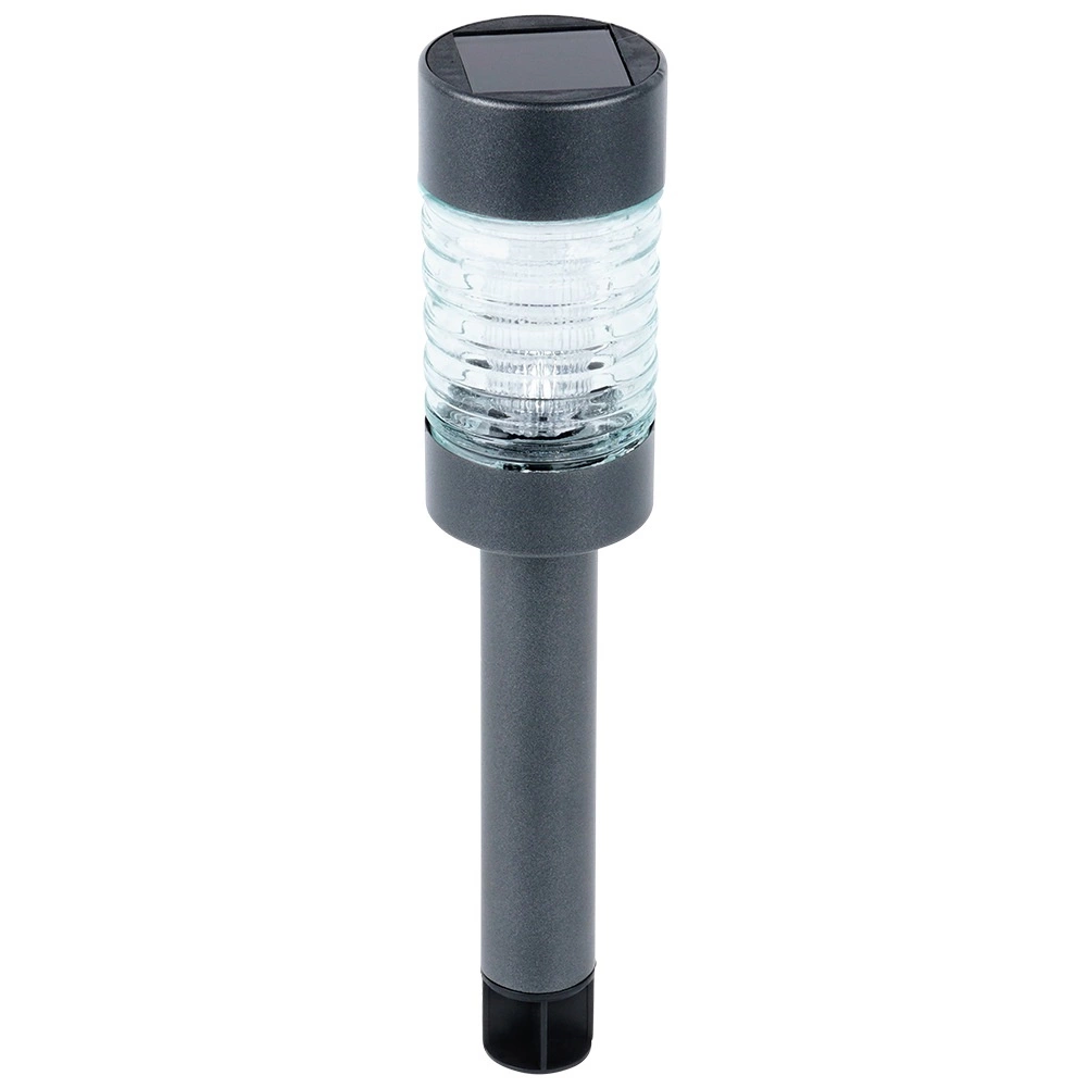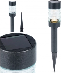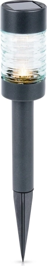Tělo lampy je vyrobeno z nerezové oceli lakované do tmavě šedé, zápich je z odolného černého plastu. Instalace je otázkou okamžiku – stačí zapíchnout do půdy, bez kabelů a nářadí. Lampa je napájena sluncem a je energeticky úsporná a šetrná k přírodě.