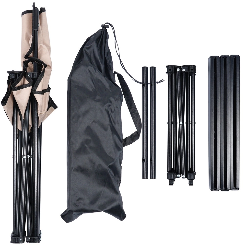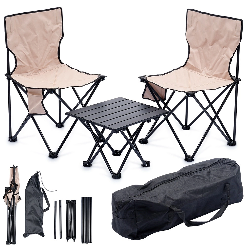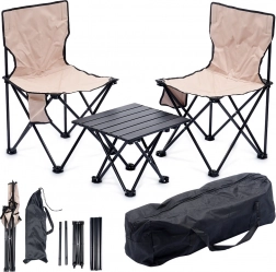 Důraz na stabilitu a trvanlivost zajišťuje ocelový rám v černé barvě a pevná polyesterová látka v elegantním béžovém odstínu. Díky kompaktním rozměrům je set perfektní pro kemp, piknik, rybářské výpravy i relax na zahradě.