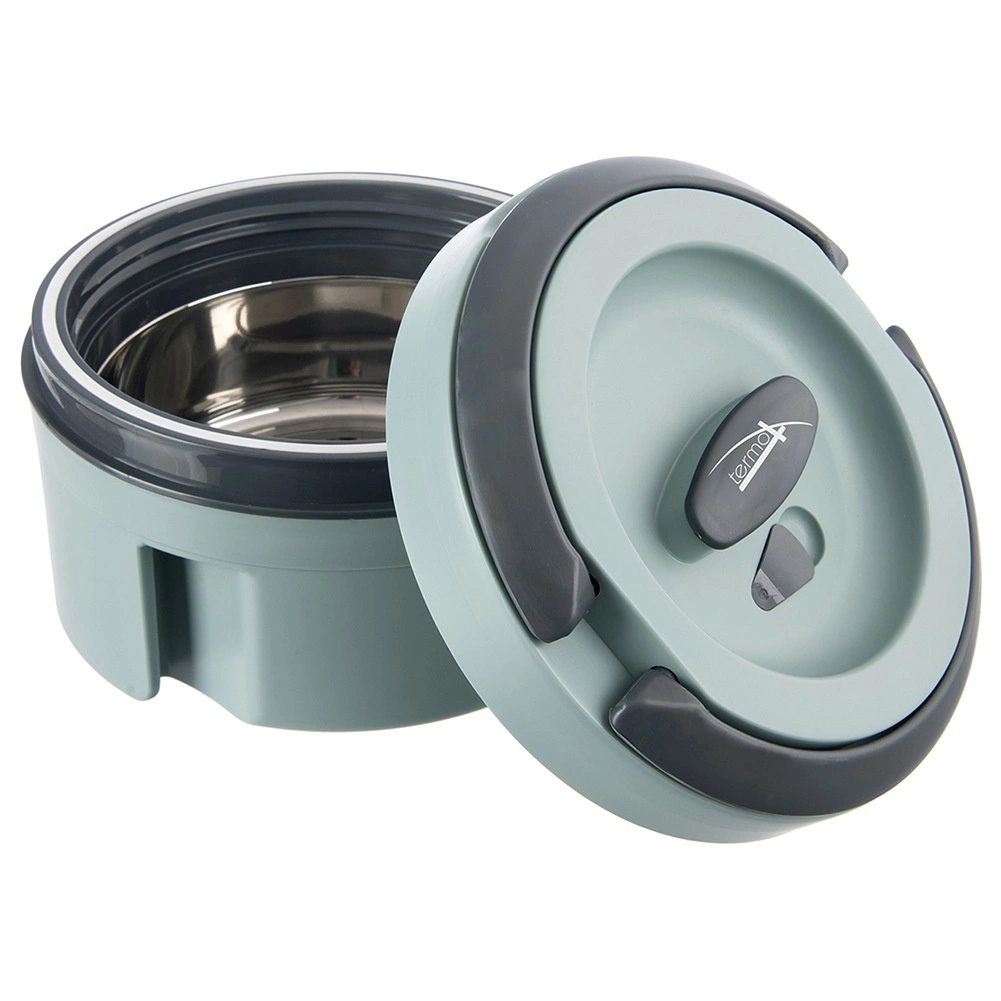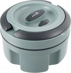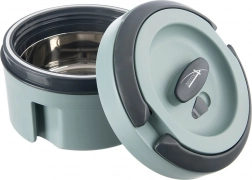 Termo jídlonosič o objemu 2,4 l kombinuje odolnou nerezovou vnitřní část s pevnou plastovou skořepinou v moderní mentolové barvě. Díky kvalitnímu těsnění a ventilu na víku je obsah bezpečně uzavřený, bez rizika protékání a s možností snadného otevření po uvolnění přetlaku.