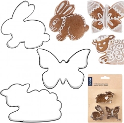 Rozměry: ovečka 7 × 4 cm, zajíček 5 × 5,2 cm, motýl 5 × 4,3 cm. Jednoduchá údržba díky možnosti mytí v myčce. Kvalitní zpracování podle evropských standardů zaručuje dlouhou životnost a spolehlivý výsledek při každém pečení.