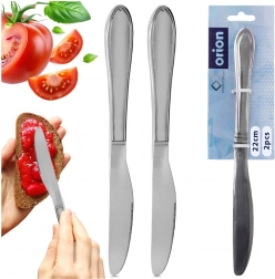 Elegantní sada dvou stolních nožů z kvalitní nerezové oceli pro každodenní používání i slavnostní stolování. Nože mají délku 22 cm, jsou leštěné do vysokého lesku a nabízí pohodlné krájení díky jemně zoubkovanému ostří. Jsou odolné, snadno se čistí a vhodné do myčky nádobí, perfektně ladí s klasickou i moderní sadou nádobí.