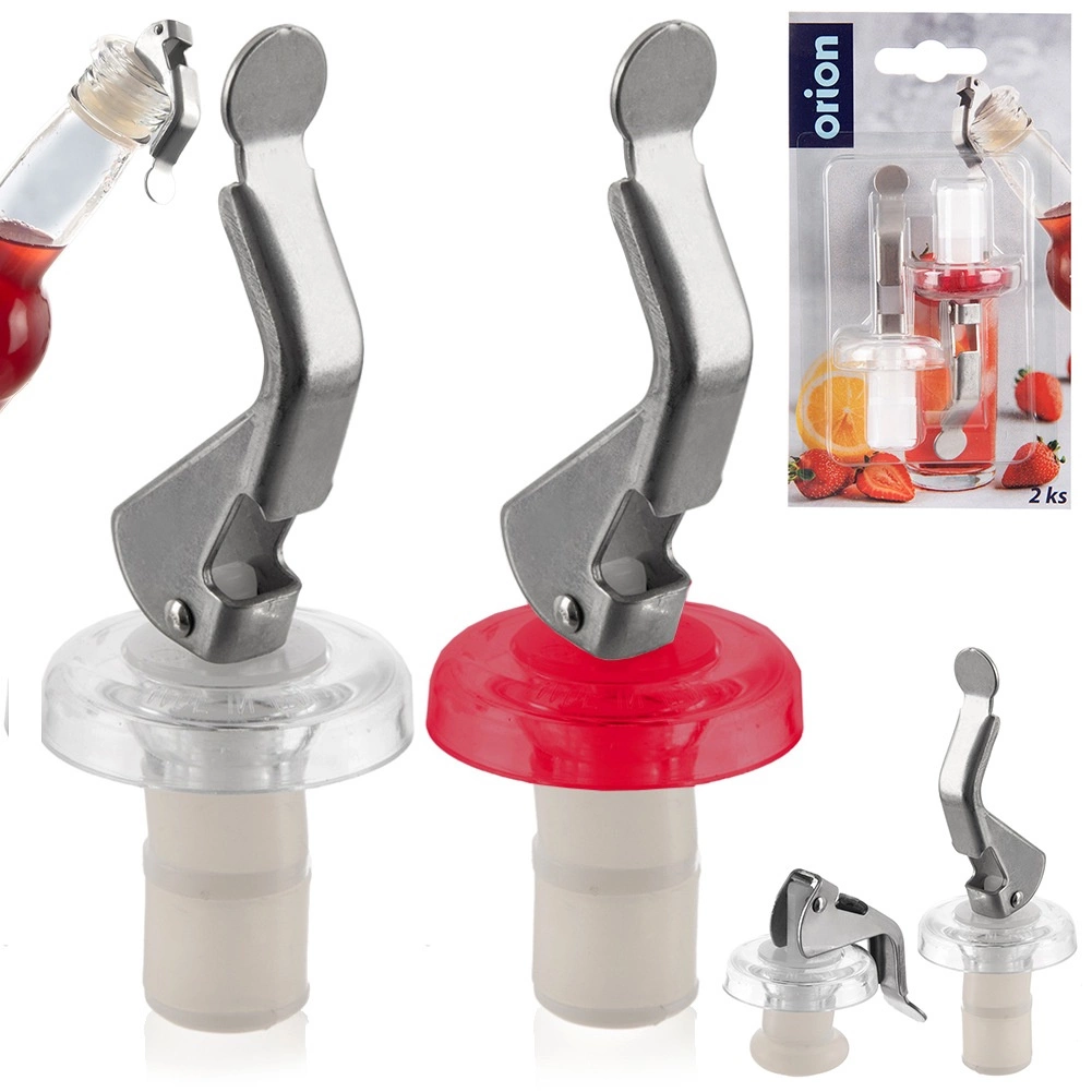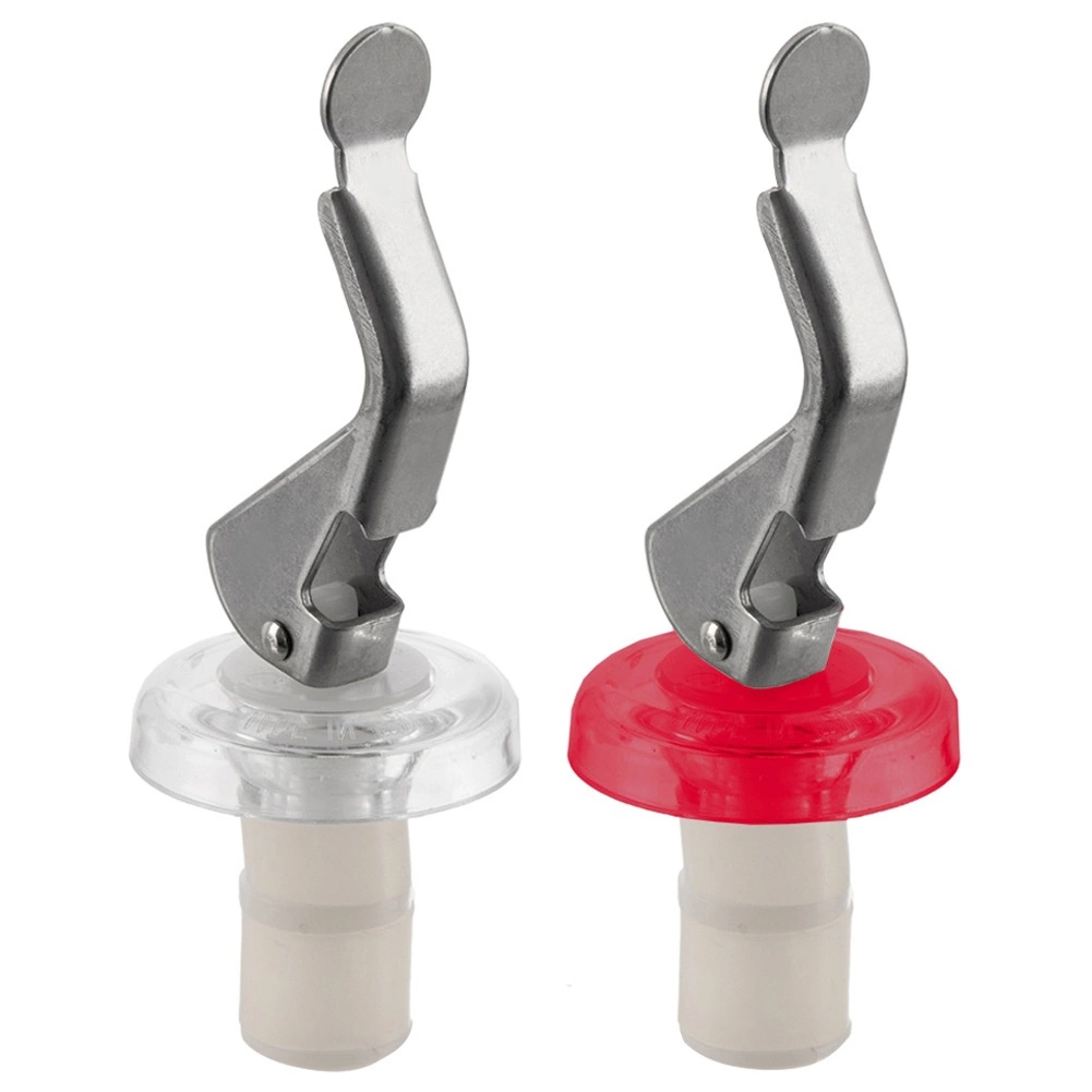 Kvalitní materiály – nerezová ocel a pevný plast – zajišťují dlouhou životnost a bezpečné používání. Zátky mají kompaktní rozměry (délka cca 9 cm, průměr cca 3 cm) a hodí se pro různé průměry hrdla. V balení najdete jednu čirou a jednu červenou zátku pro snadné rozlišení.