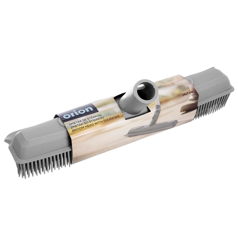 Husté TPR štětiny v šedé barvě sbírají prach, vlasy i srst z hladkých podlah i koberců. Antistatické vlastnosti brání rozvíření nečistot – ideální i do kadeřnictví.