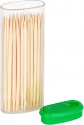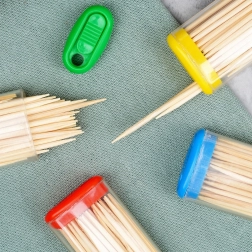 Průhledný zásobník s posuvným/otočným víčkem udržuje párátka čistá a umožní odebírat je po jednom – ideální pro domácí i profesionální použití.