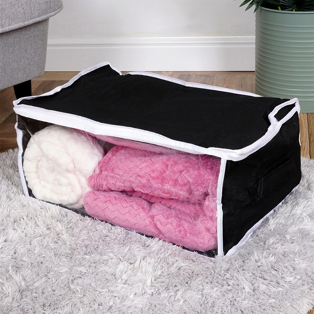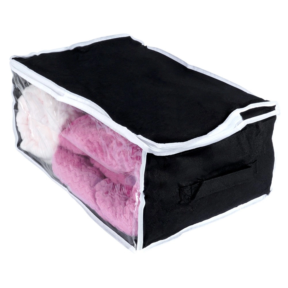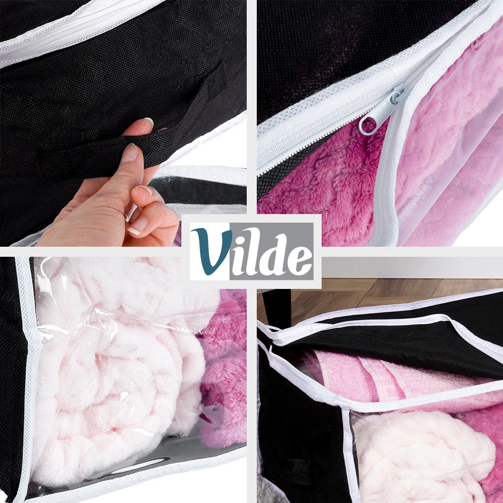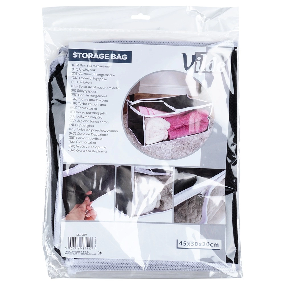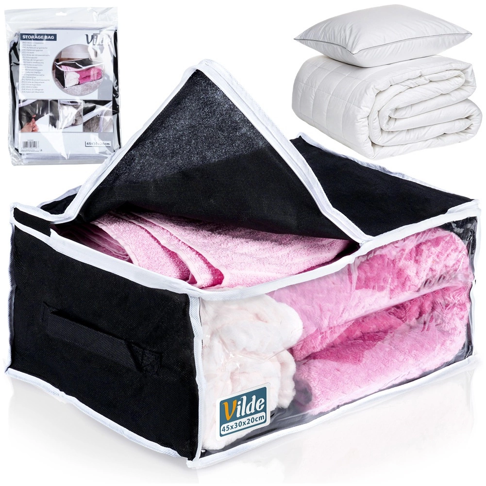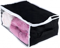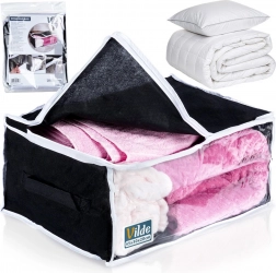 Praktický úložný vak na ložní prádlo, deky, polštáře i oblečení chrání vaše textilie před vlhkostí, prašností a moly. Díky průhlednému okénku, dvojitému zipu a pohodlnému uchu máte vše přehledně uspořádané a snadno přenosné – ideální do skříně i pod postel.